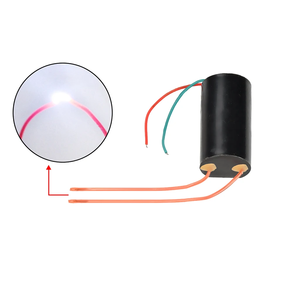 El módulo tiene un extremo de entrada y un extremo de salida.Los cables rojo y verde (blanco) son el extremo de entrada, siendo el rojo positivo y el verde (blanco) negativo.Los dos cables gruesos de alto voltaje del mismo color son el extremo de salida.Asegure el extremo de salida a una distancia de arco adecuada, conecte el extremo de entrada a la batería y se generarán arcos de alto voltaje o alta temperatura.