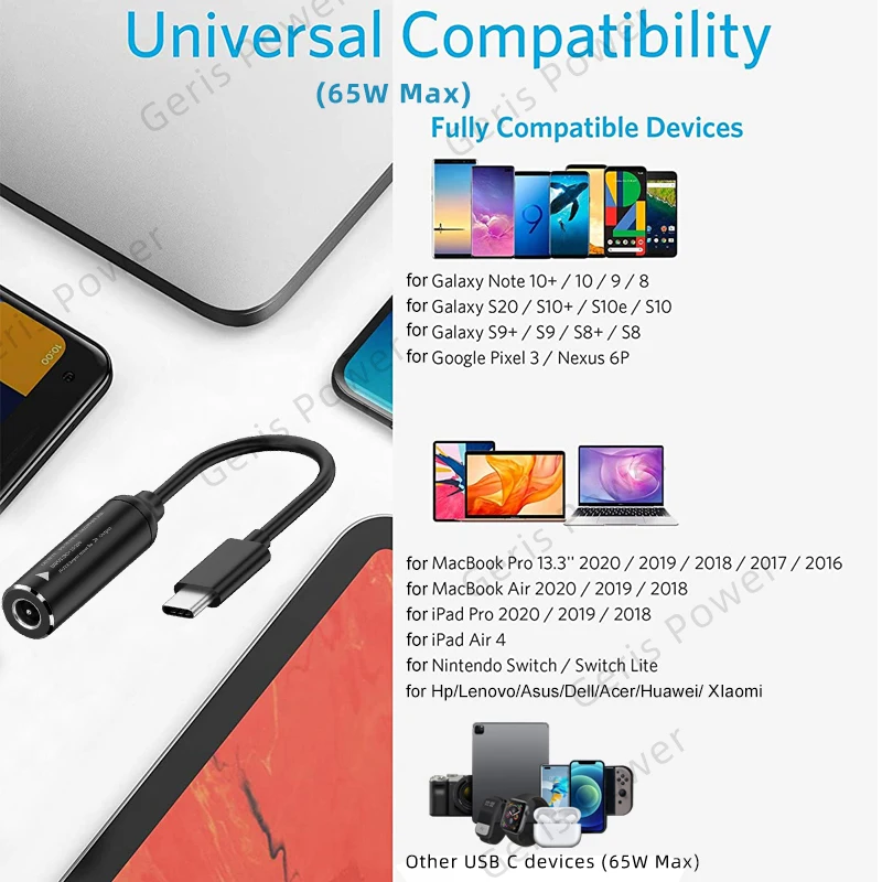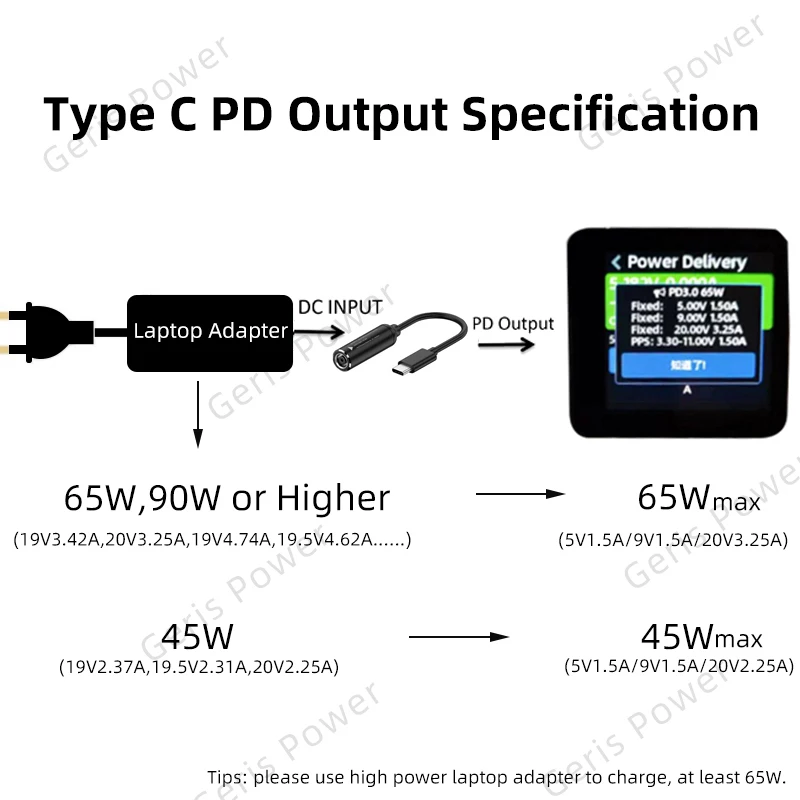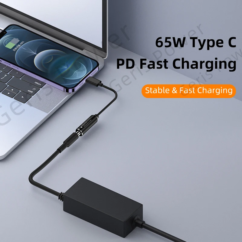 ¡Solo enchufe CC convertidor!Consejos: ¡¡¡La potencia de entrada debe ser ≥ la potencia de salida!!! Utilice un adaptador de computadora portátil hembra de 65 W o potencia superior para cargar. Si su adaptador hembra es de 45 W, como 19,5 V 2.31 A, entonces la salida USB C PD es de 45 W, no de 65 W. Por favor verifique cuidadosamente antes de realizar el pedido. Comprar DC 4,5x3,0mm para Dell Hp adaptador de ordenador portátil a 65W USB-C tipo C PD Cable de carga para MacBook Samsung Huawei Xiaomi