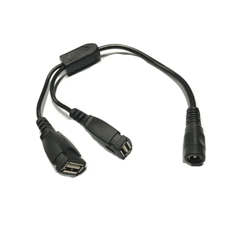 DC 5,5*2.1MM 5,5/2.1 hembra a 2 puertos USB A hembra convertidor Cable de línea de carga de energía 5V 12v
