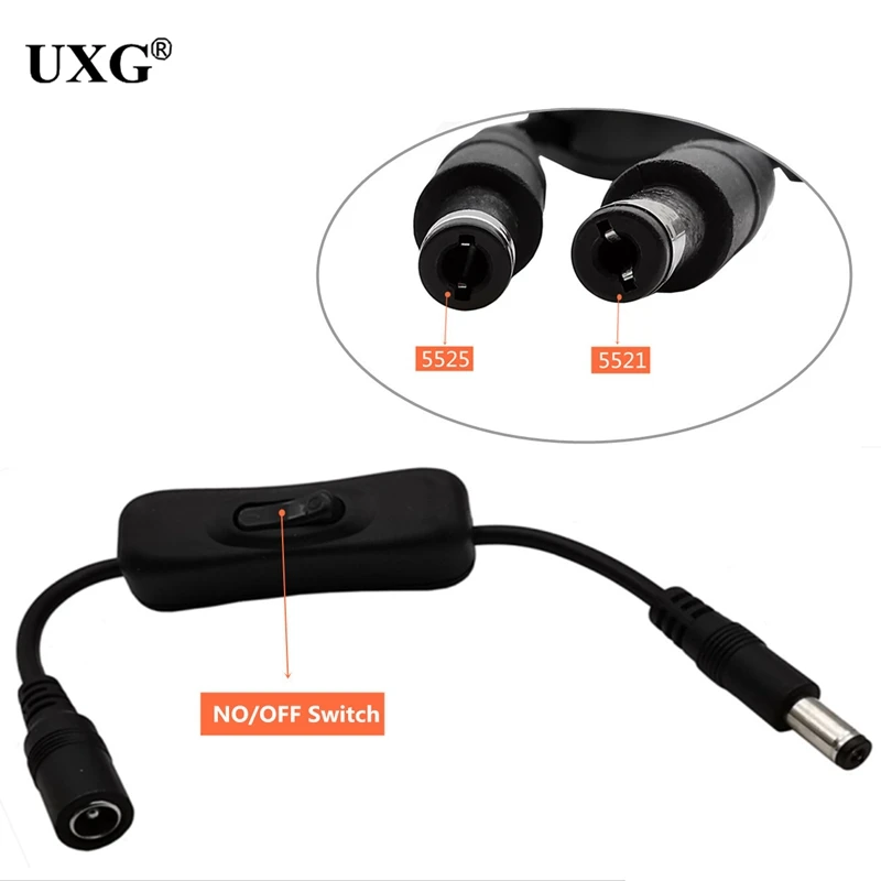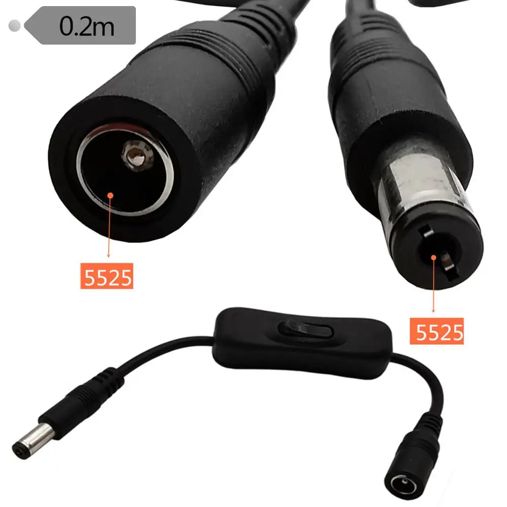 Comprar DC 5,5mm x 2,1mm 2,5mm Cable de alimentación macho a hembra, Cable de extensión 3A con interruptor de encendido/apagado, cable de alimentación de 20cm
