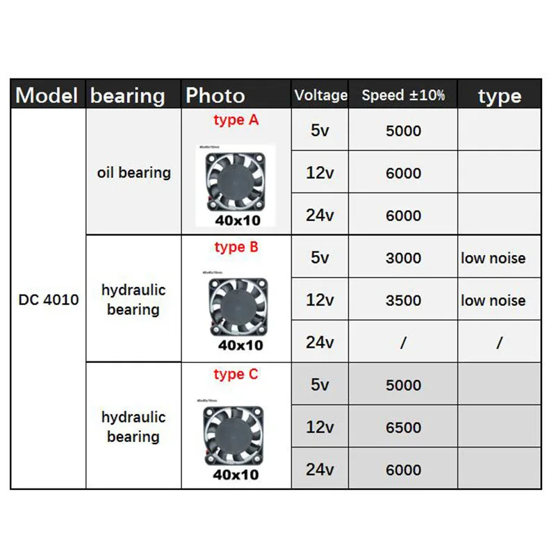DC 5V 12V 24V 4010 40x40x10MM Cooling Fan low noise brushless Blower Bearing sleeve hydraulic Fluid Bearing for 3D Printer 4cm