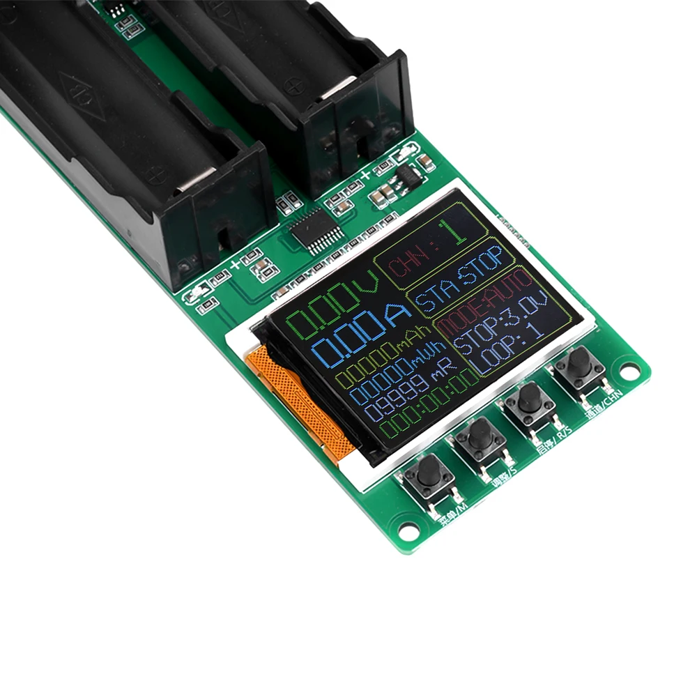 Admite carga y descarga separadas y admite hasta 9 ciclos de carga y descarga en modo automático. Cada canal es independiente del otro, se puede configurar por separado, operación independiente, sin interferencias entre sí. Clip de batería resistente, soporte de batería 18650 que utiliza soporte de batería compacto, adecuado para medir baterías planas.