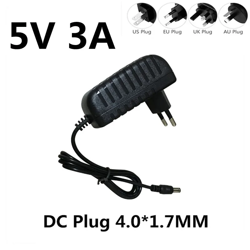 Adaptador de corriente universal, transformador de fuente de alimentación conmutadaLa fuente de alimentación para requisitos de voltaje para el rango de 4,8 V-5,2 V, la demanda de corriente dentro del dispositivo 3a o 3aAlimentación CC aplicada a las necesidades eléctricas Placa DE DESARROLLO 5v3a, disco duro extraíble, etc.El voltaje de la fuente de alimentación es adecuado para todo tipo de necesidades 5V 3A o menos 3A productos de entrada de corriente CC, ¡no se puede sobrecargar para usar!Atención selectiva de potencia, debe seguir para seleccionar que la corriente eléctrica constante de voltaje sea igual o superior a la fuente de alimentación de corriente requeridaVoltaje de entrada (ENTRADA): CA 100-240V 50-60HzEl voltaje de salida (SALIDA): DC 5V 3APotencia (potencia máxima de salida): 15WTotal: si las siguientes imágenes tienen una longitud de mapa físico de 1 mPolaridad: positivo interno, negativo externoEnchufe de CC: 4,0-1,7 MM
