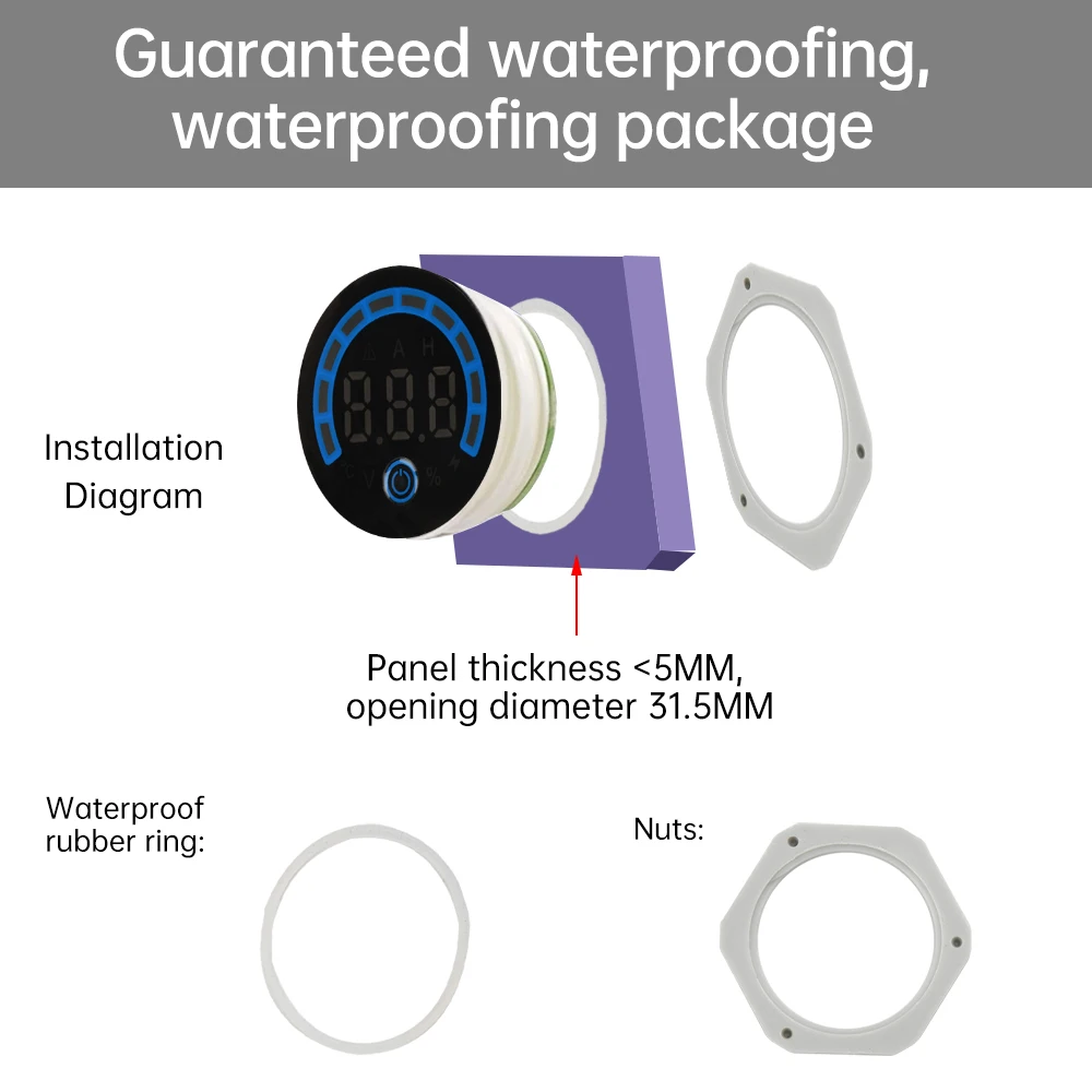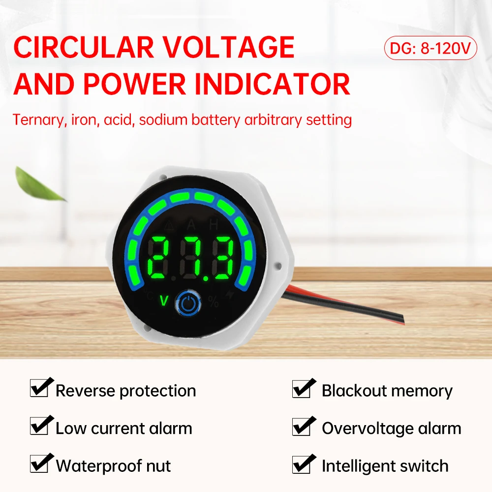 1 voltímetro Digital Circular de 2 cables DC 8-120V, indicador de potencia, Panel de voltaje LED, medidor de Monitor de voltios