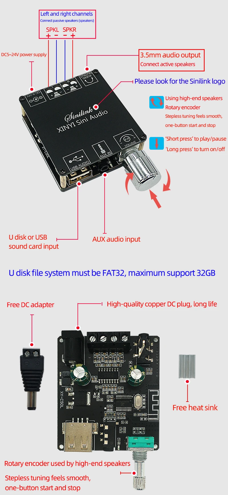 DC 8-26V Audio estéreo de doble canal Bluetooth 5,0 Placa amplificadora de potencia Digital 50W + 50W Módulo amplificador con Bluetooth AUX