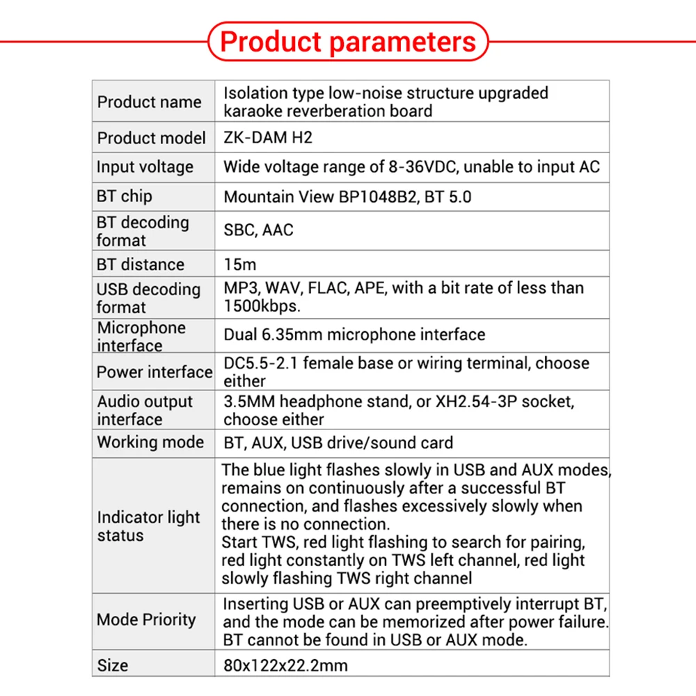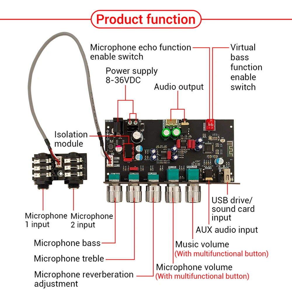 Nombre del producto: Tablero de reverberación de karaoke mejorado con estructura de bajo ruido tipo aislamiento