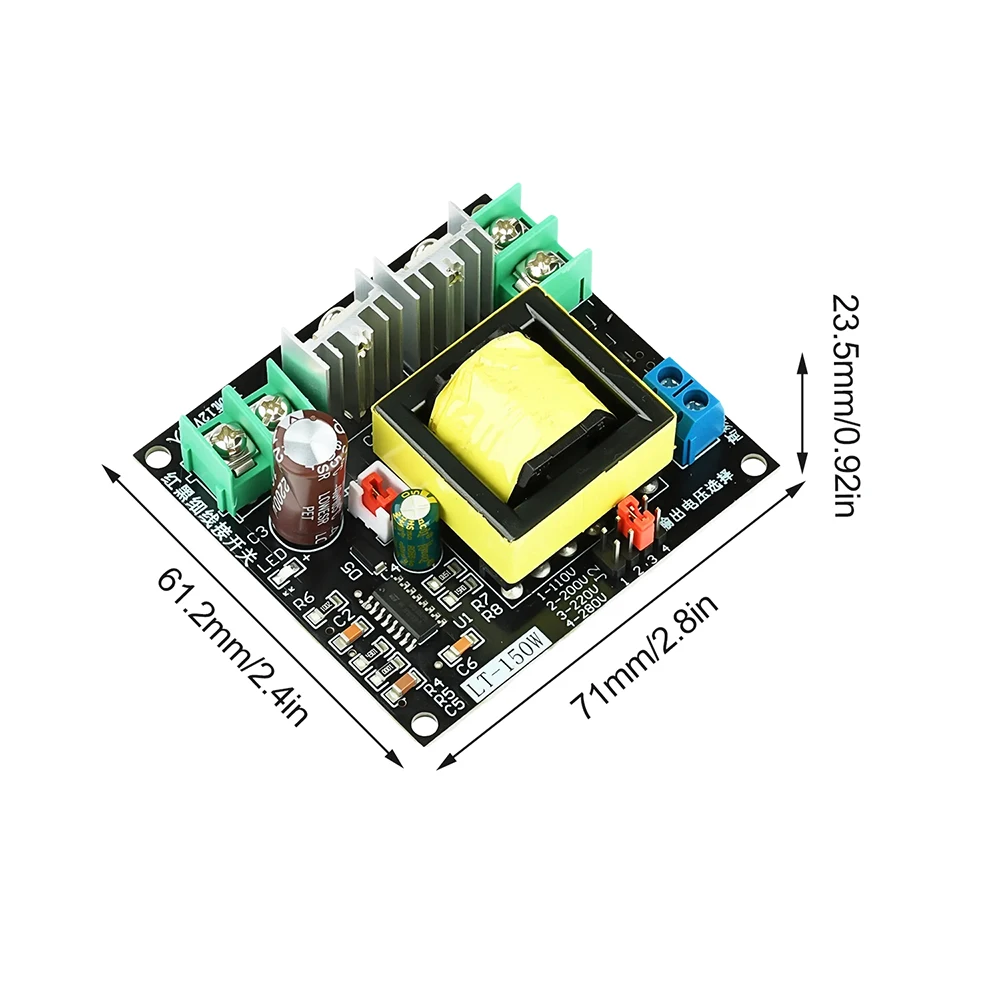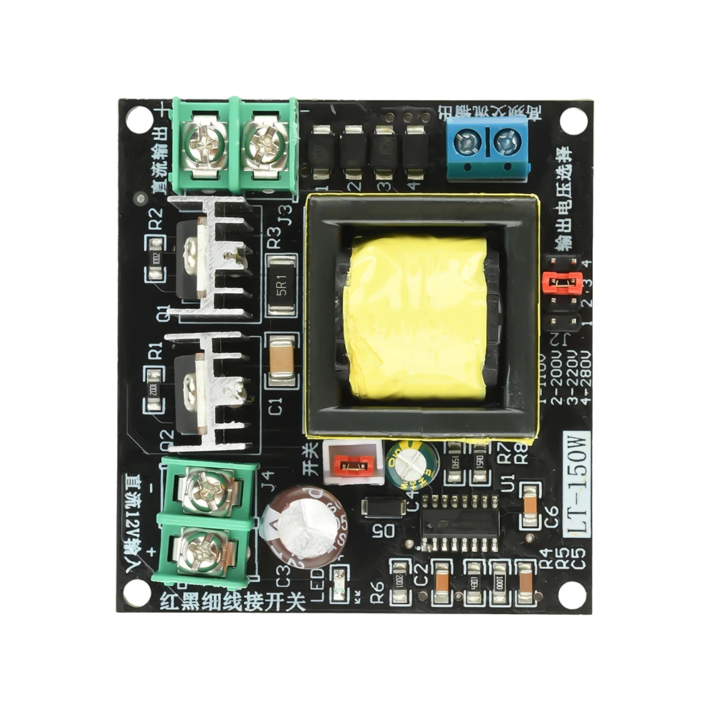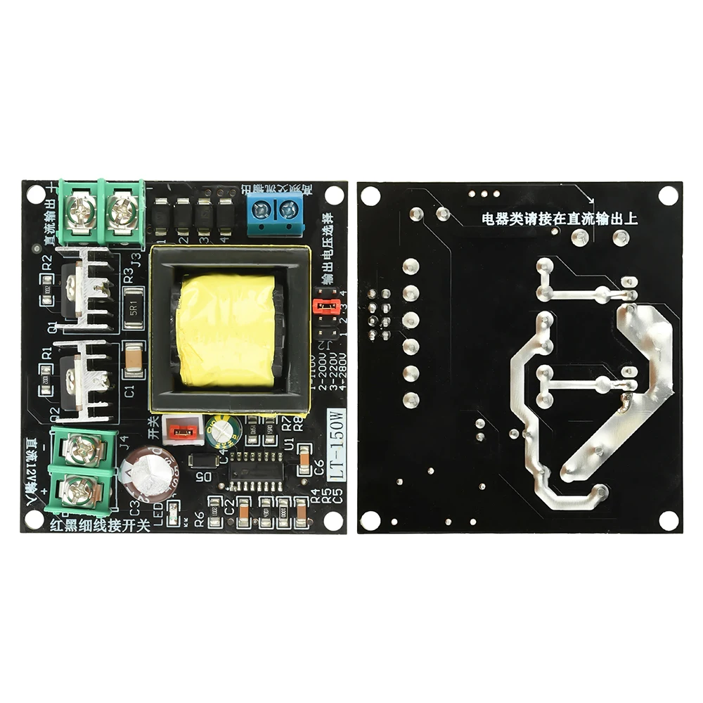 The multimeter can be used to measure the voltage in DC gear, and it can be equipped with switching power supply loads (the electrical appliances marked with the input voltage of AC100-240V ), resistive loads. Power conversion circuit board of 150W inverter battery DC12V step-up transformer AC220V step-up transformer. Switch: the red line and black line on the board are switches to control whether the high-voltage output is available.