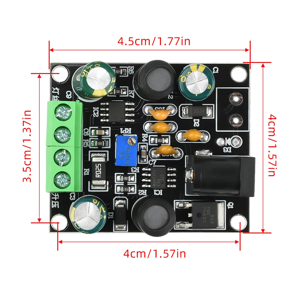 Potenciómetro de ajuste de voltaje de salida: gire en el sentido de las agujas del reloj para aumentar el voltaje de salida; Gire en sentido antihorario para disminuir el voltaje de salida.