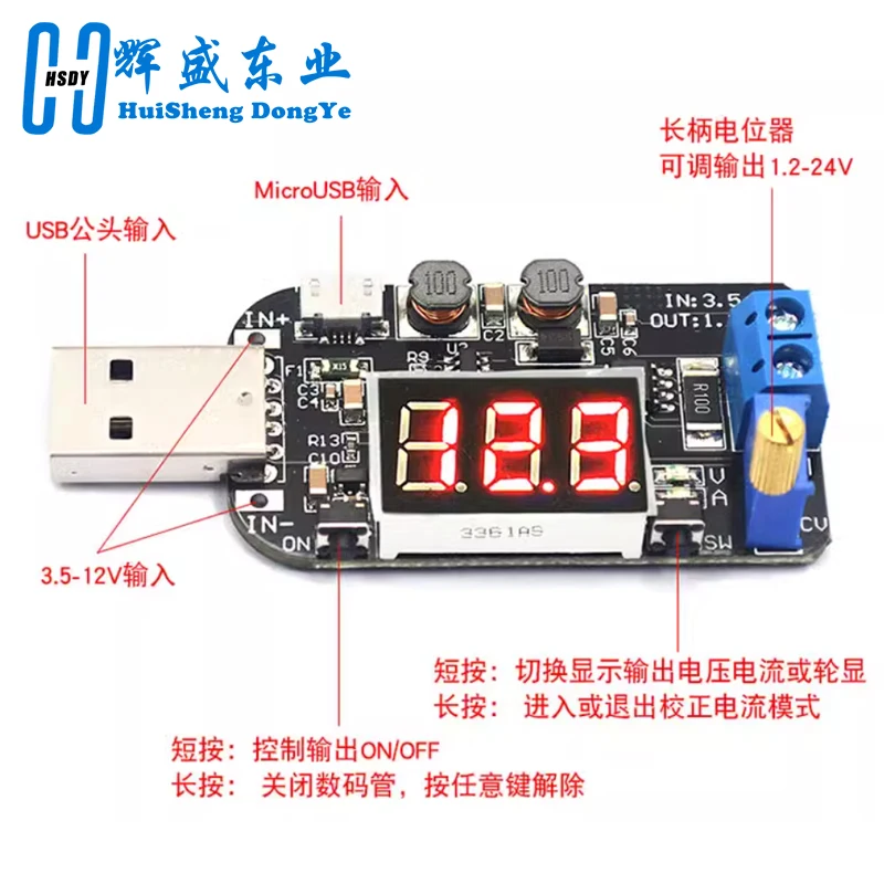 Descripción:Módulo de fuente de alimentación elevadora/reductora de corriente continua (CC) ajustable, de voltaje constante y corriente constante, con pantalla digital LED.Muestra el voltaje de salida, la corriente de salida y la potencia de salida.Voltaje y corriente de salida ajustables.Establezca la corriente de salida para cumplir con los requisitos.Puede utilizarse como un módulo de fuente de alimentación reductora común, cargador y controlador de corriente constante LED.Sencillo y eficiente, práctico.Características: