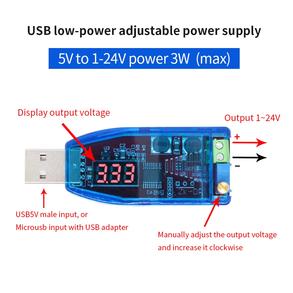 Comprar DC-DC LED de 5V a CC, 1-24V, USB, potenciómetro ajustable, módulo regulador de fuente de alimentación, 3W