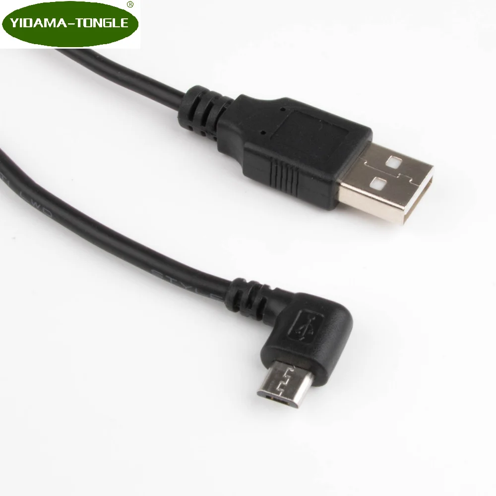 Comprar DC enchufe de alimentación USB convertir a Micro USB forma L negro ángulo recto Jack con cable conector cable