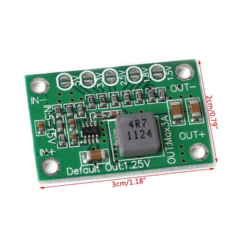 Características:Mini DC-DC módulo convertidor de voltaje regulado reductor con para entrada Dc 5-16V y salida de voltaje fijo de 1,25 V/1,5 V/1,8 V/2,5 V/3,3 V/5V.