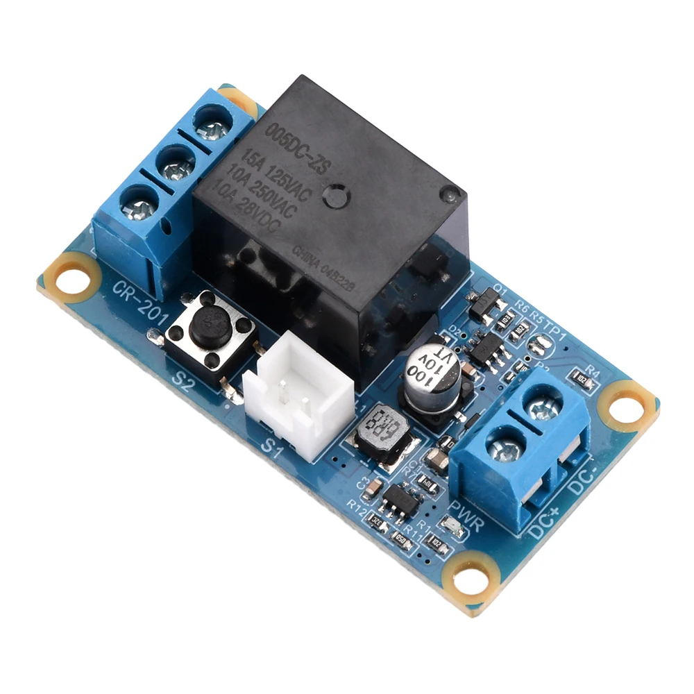 Presione el botón S2 para bloquear el relé y presione nuevamente para desconectar el relé. Los contactos externos también se pueden usar para cambiar y disparar a niveles bajos.