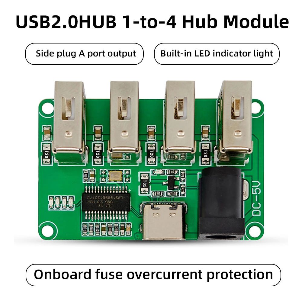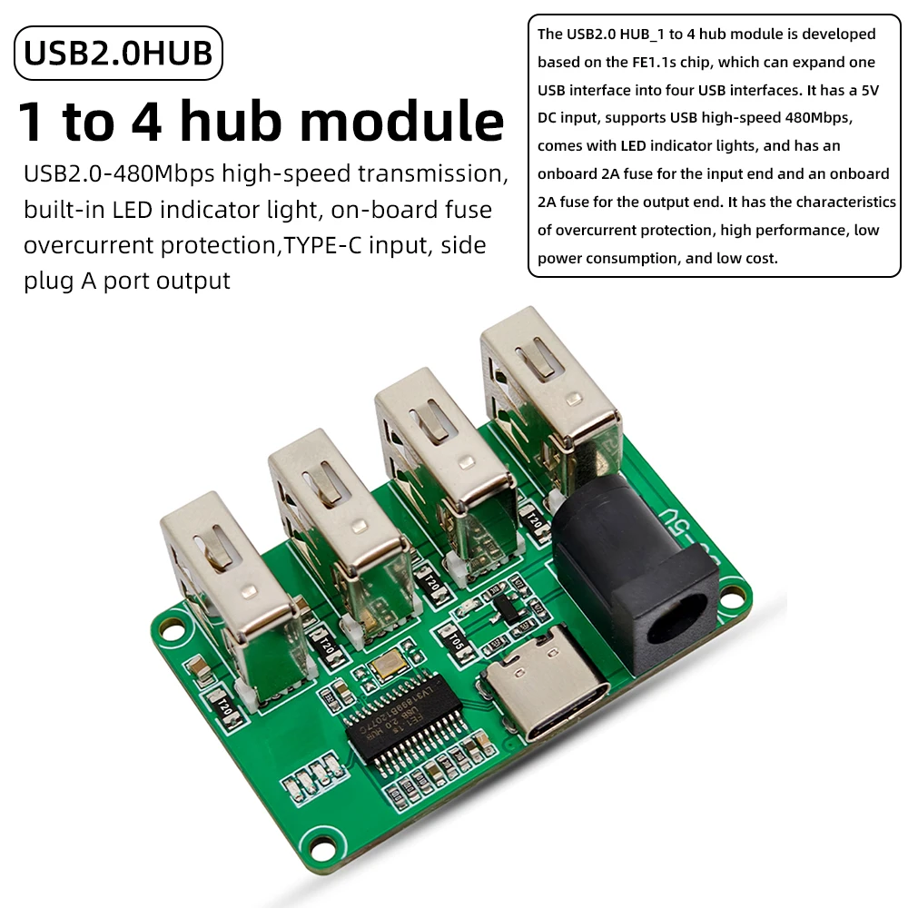 El módulo concentrador USB 2.0 HUB_1 a 4 está desarrollado en base al chip FE1.1, que puede expandir una interfaz USB en cuatro interfaces USB.Tiene una entrada de 5 V CC, admite USB de alta velocidad de 480 Mbps, viene con luces indicadoras LED, un fusible de 2 A integrado para el extremo de entrada y un fusible de 2 A integrado para el extremo de salida.Tiene las características de protección contra sobrecorriente, alto rendimiento, bajo consumo de energía y bajo costo.