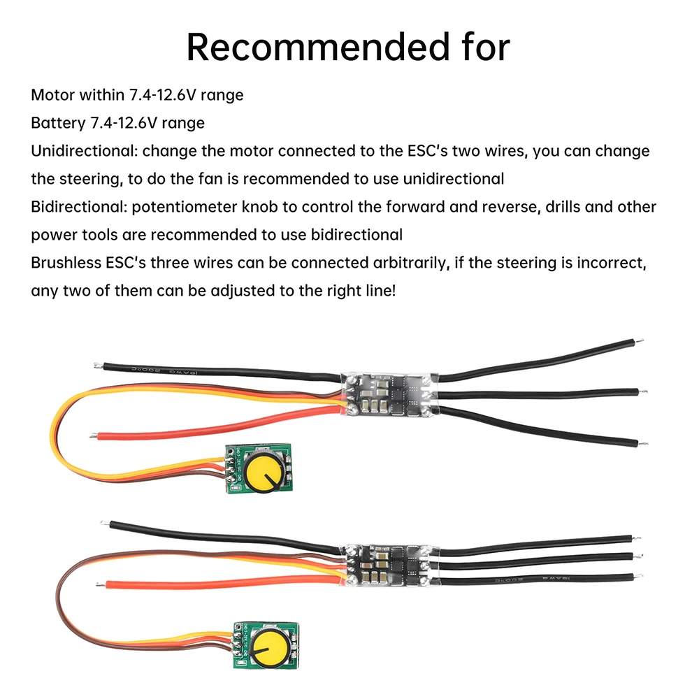 Bidireccional: la perilla del potenciómetro controla la rotación hacia adelante y hacia atrás.Se recomienda utilizar dos vías para herramientas eléctricas como taladros eléctricos.