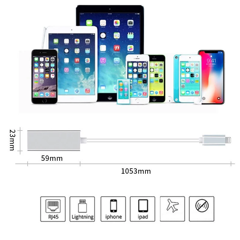 Adaptador de red RJ45 toLightning con cable Ethernet LAN 100Mbps