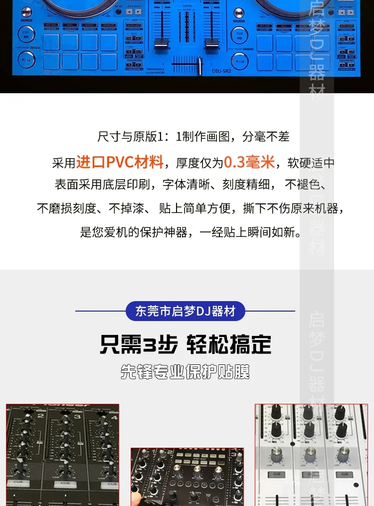 DDJ-SR2 Controlador todo en uno y fabricante de discos Película protectora de piel autoadhesiva importada de PVC