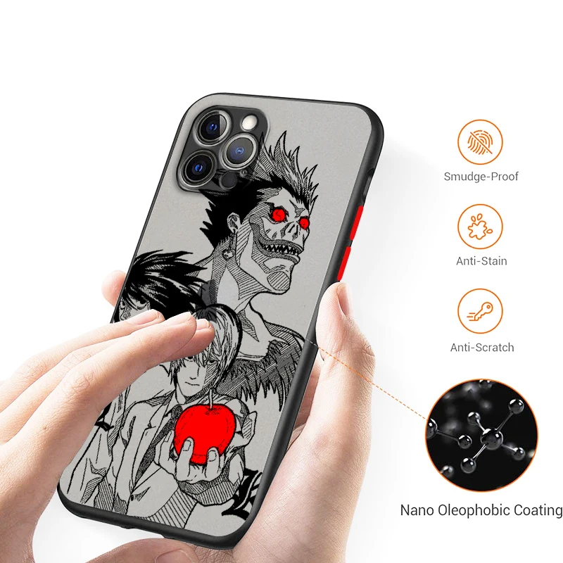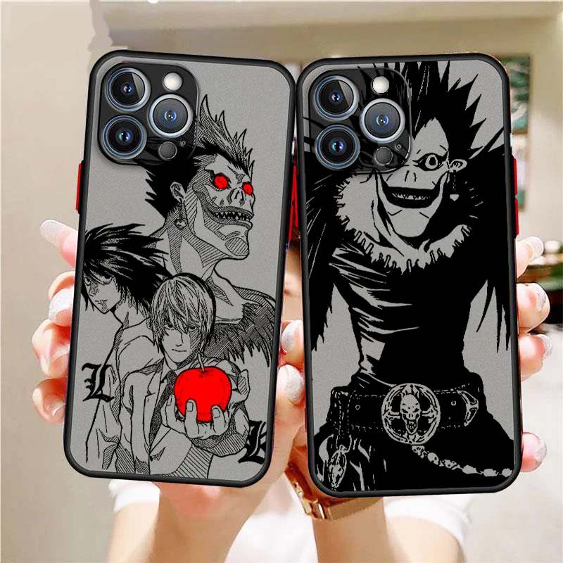 Comprar Death Note-funda translúcida esmerilada de Anime para iPhone, carcasa mate para teléfono de Apple 16, 15, 14, 13, 12, 11, XS, XR, X Pro Max Plus Mini