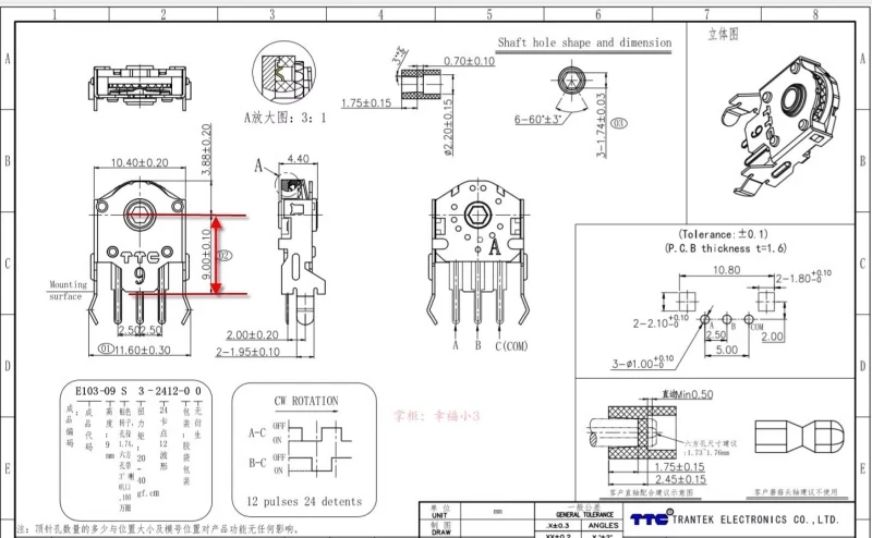 Decodificador de desplazamiento de ratón TTC 9mm original