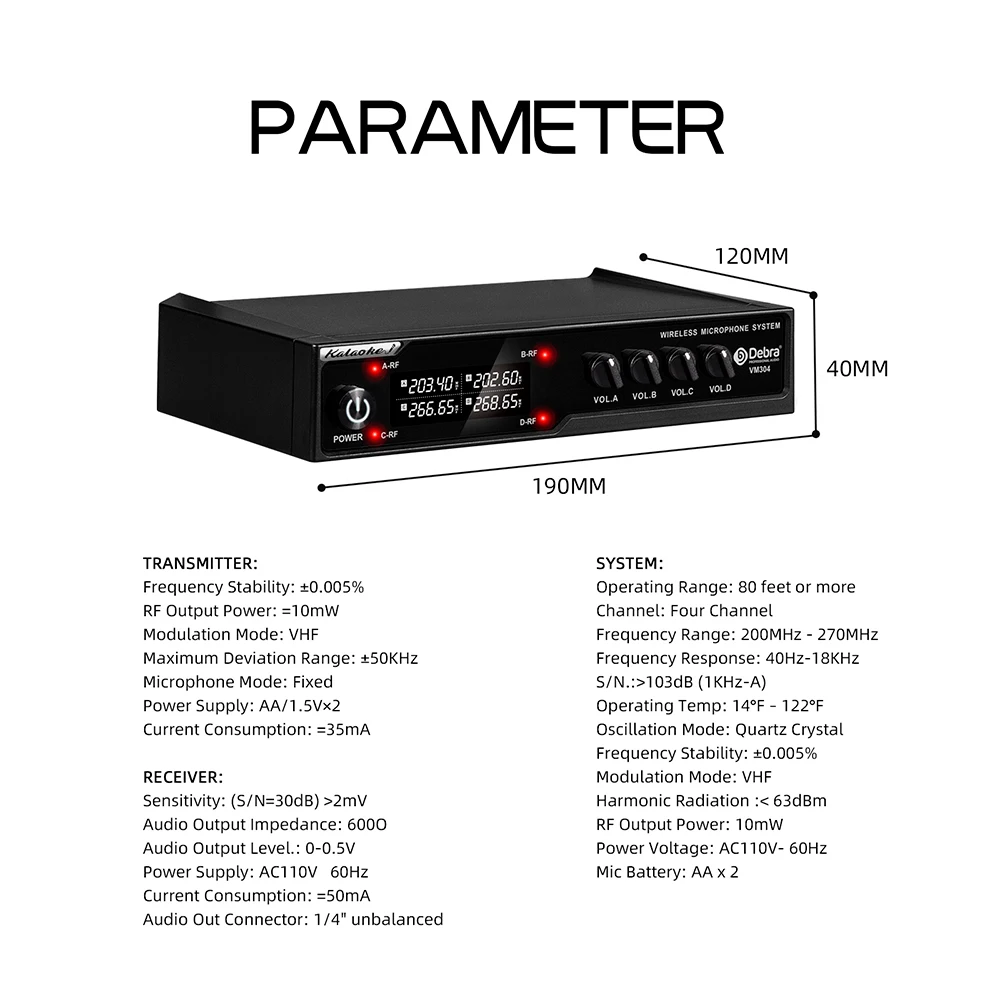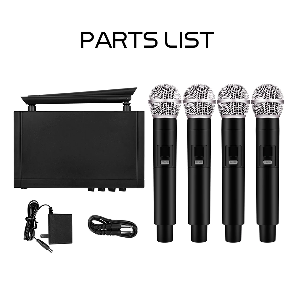 【VM304】 Receptor * 1, micrófono de mano * 4, cable de alimentación * 1, cable de audio de 6,5 mm * 1, manual de instrucciones en inglés * 1