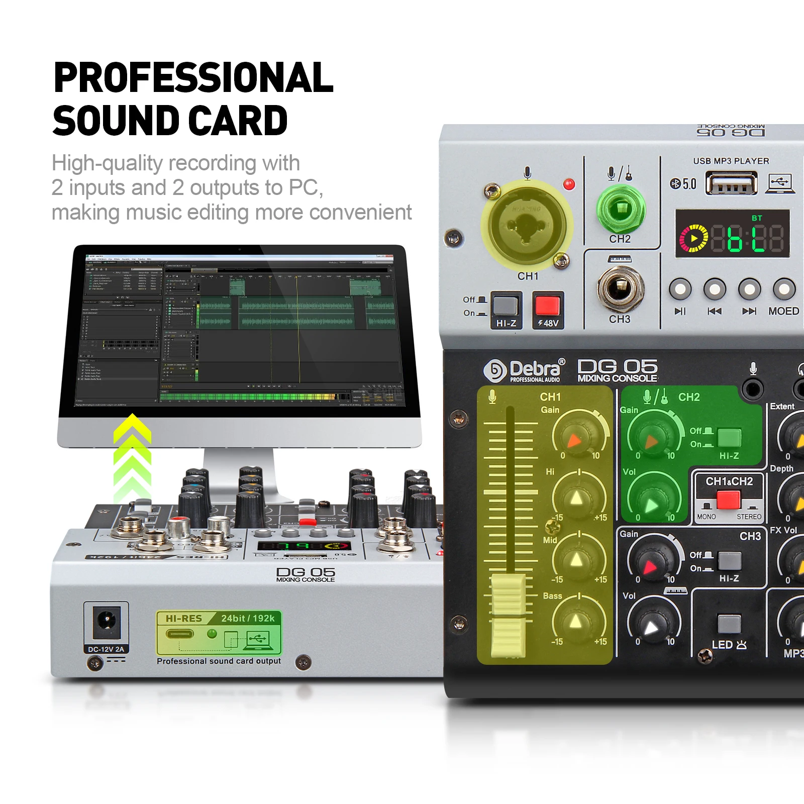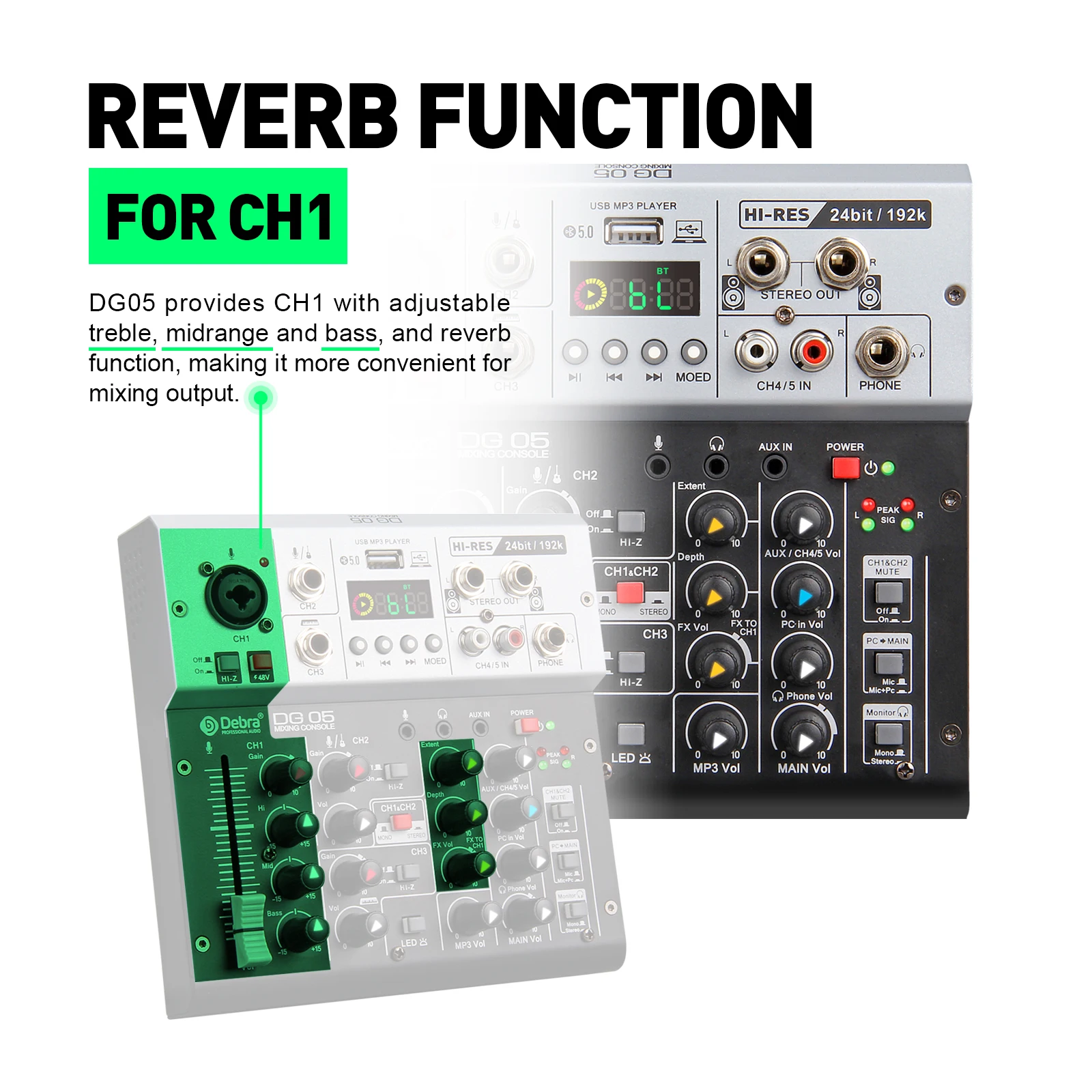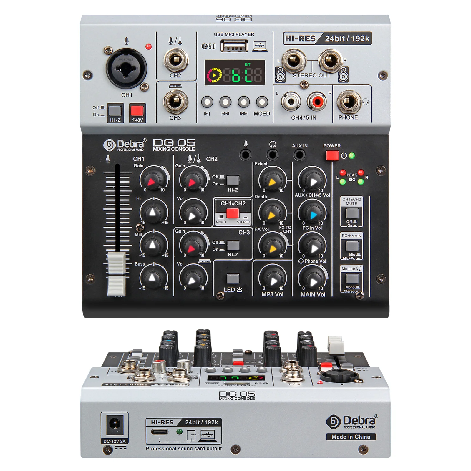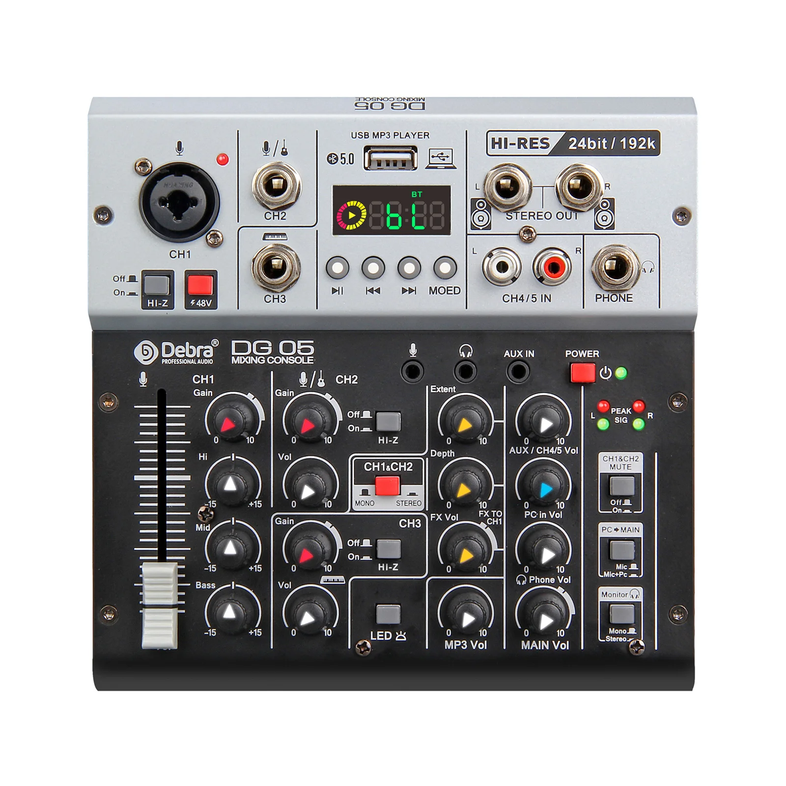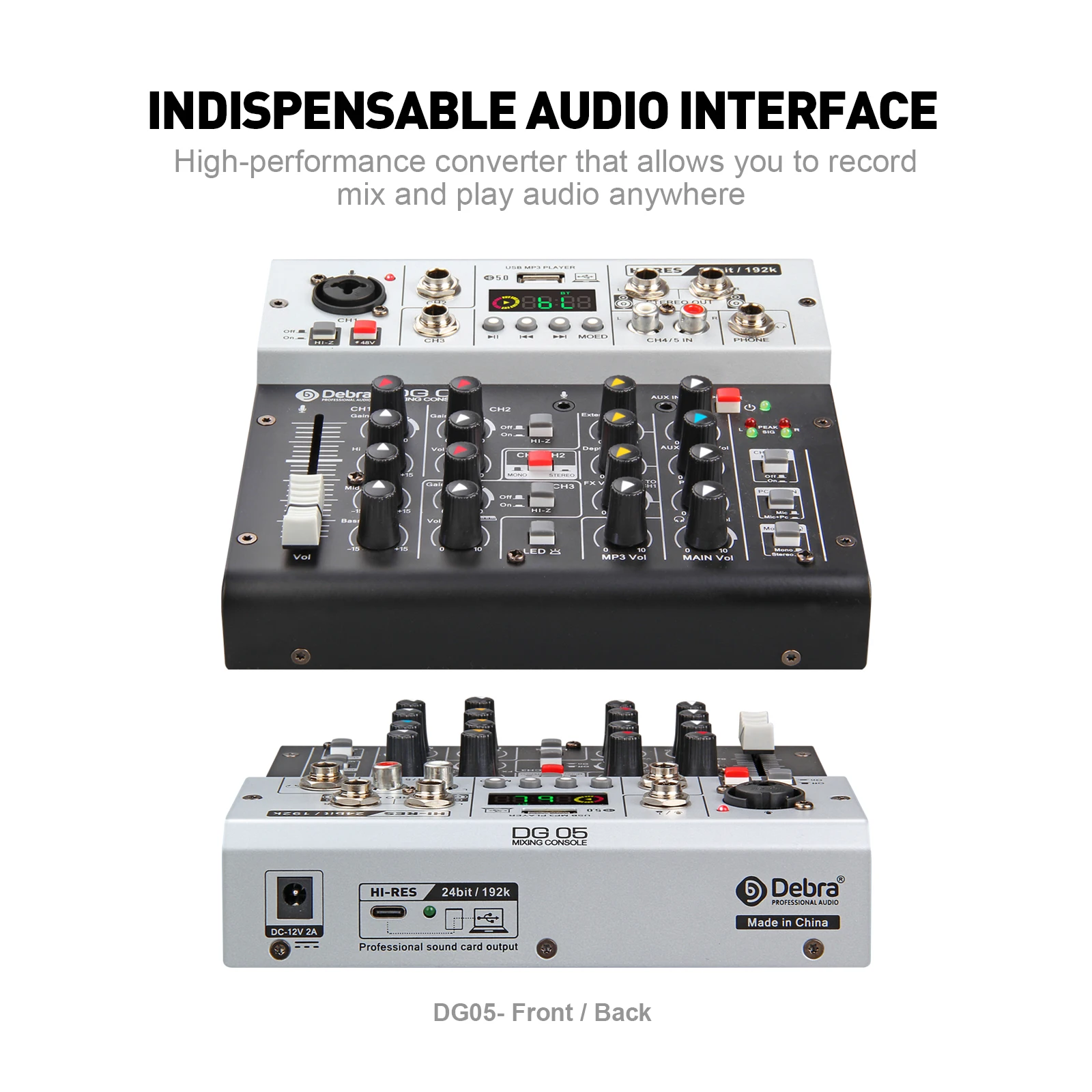 El DG05 es un mezclador multiusos de 5 canales con interfaz de audio, ideal para transmisiones web en vivo: el DG05 es un mezclador de 5 canales con interfaz de audio, ideal para transmisiones web en vivo.