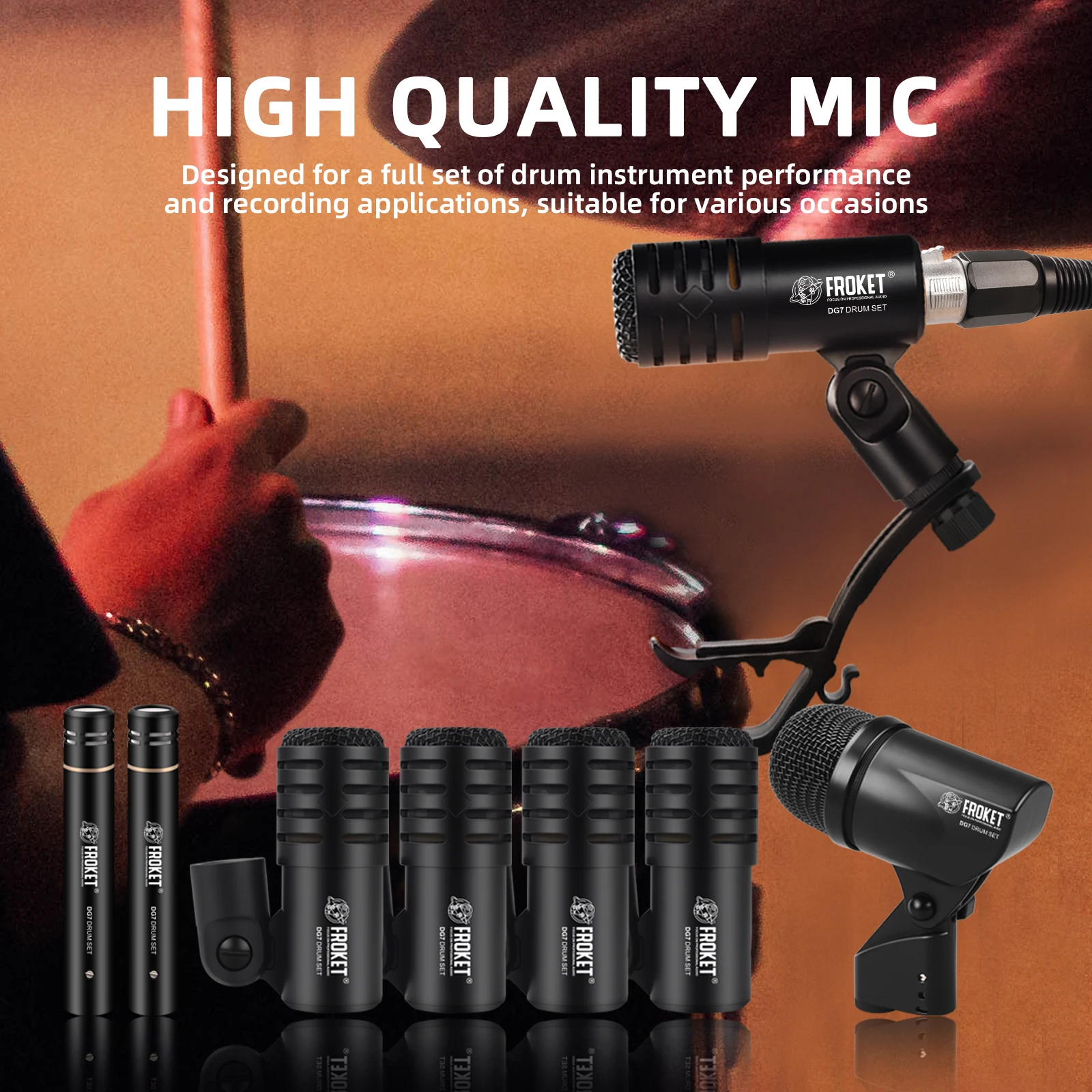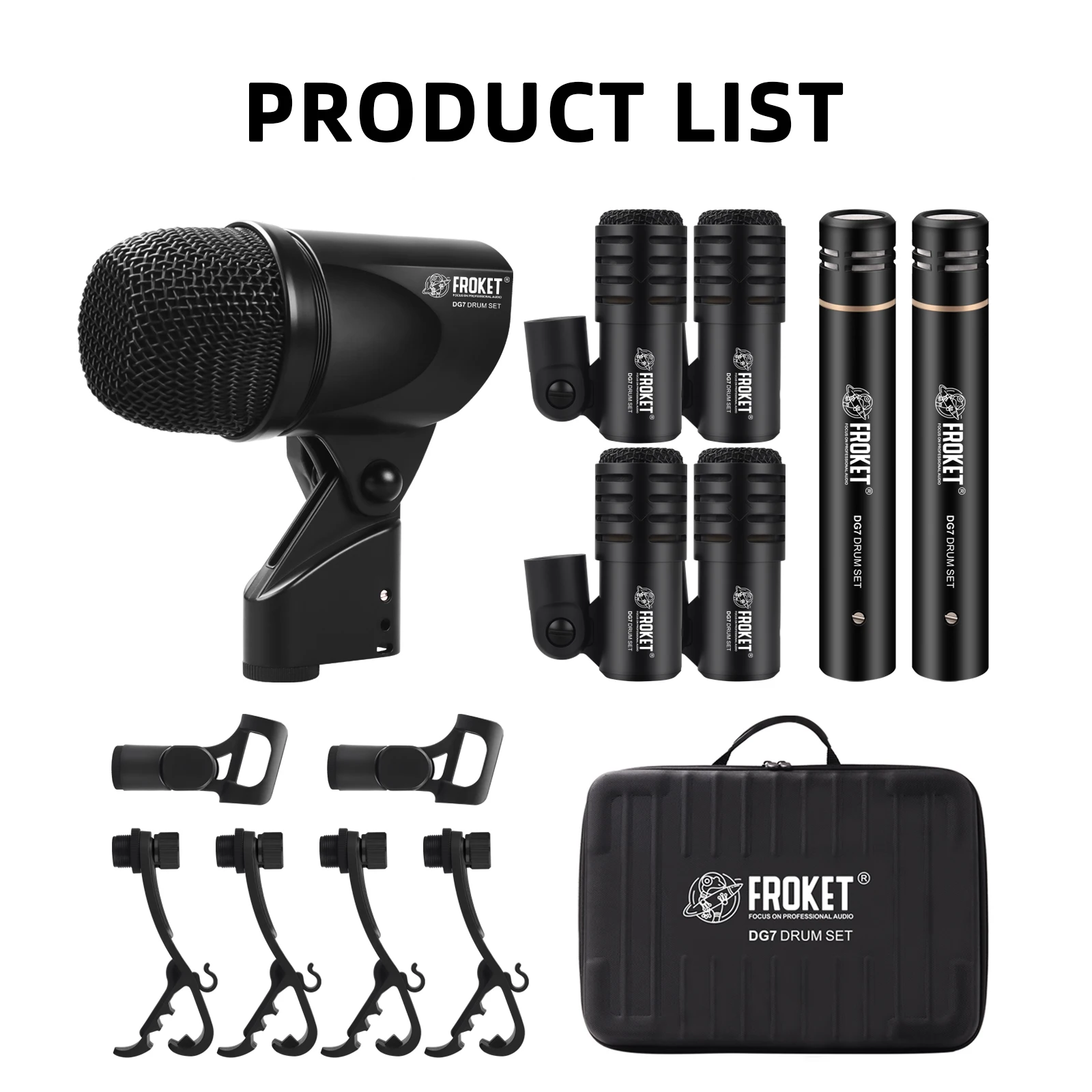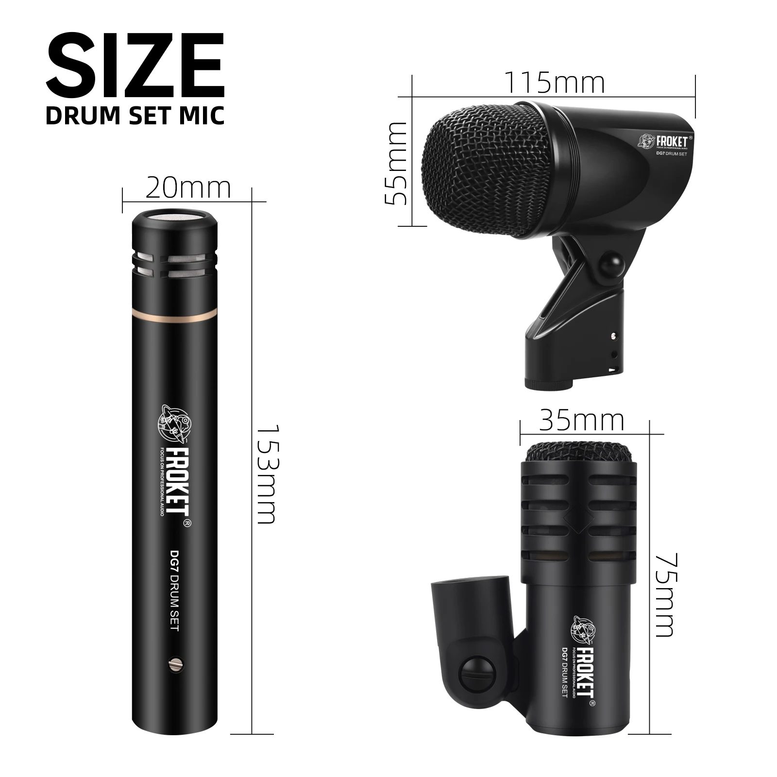 Debra DG7 Juego de micrófonos de tambor dinámicos con cable serie Evolution con soporte de brazo con Clip Kit de micrófonos de tambor profesionales