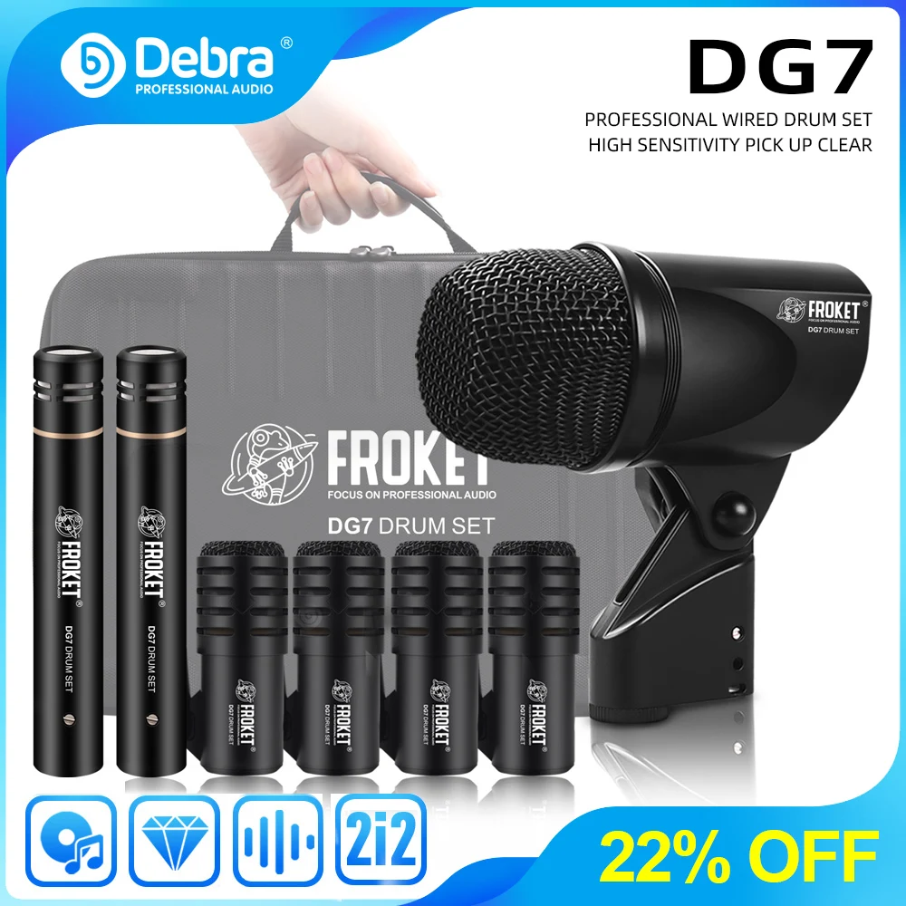 Comprar Debra-micrófono de tambor DG7, conjunto dinámico con cable, serie Snare Evolution con soporte de brazo de Clip, kit de micrófonos de tambor profesional