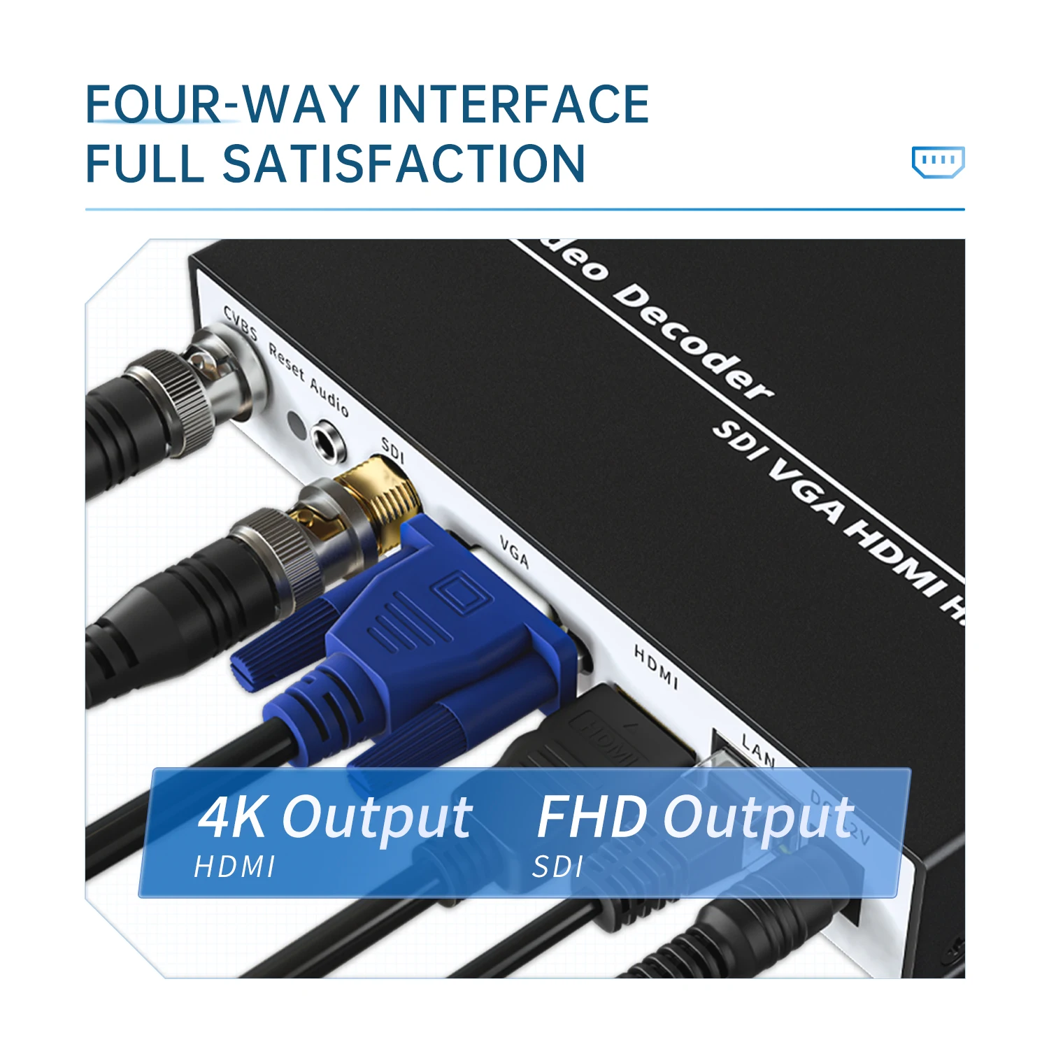 Comprar Decodificador SDI 4K UHD H.265 H.264 VGA, baja Lantency Repleace Topbox y transmisor de PC RTSP RTMP SRT UDP Stream IP a HDMI