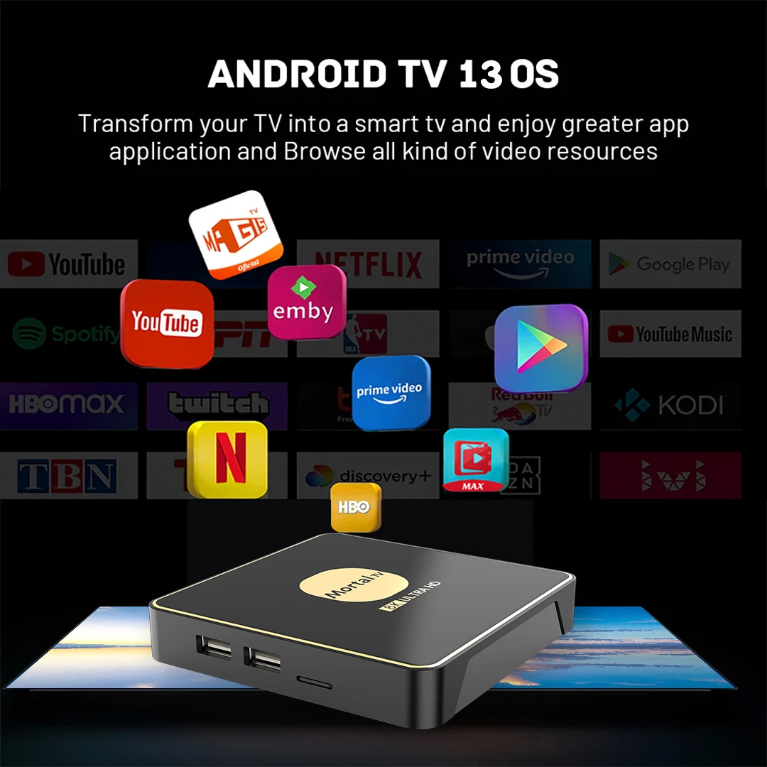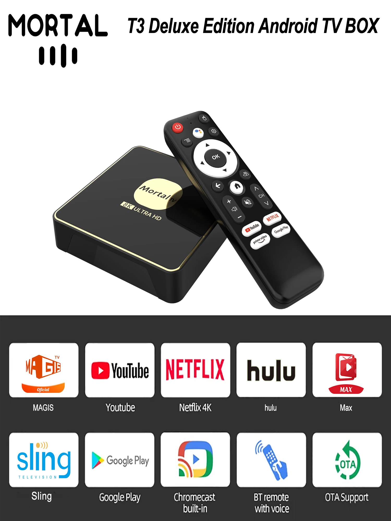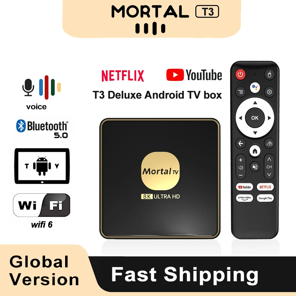 Comprar Decodificador de TV inteligente Mortal T3 con Android 13, 4K, HDR10, Wifi6, reproductor multimedia Rockchip 3528, 128 GB de memoria grande, Bluetooth, Chromecast