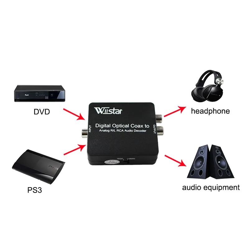 Decodificador Wiistar DTS/AC3 Decodificador y convertidor de audio L/R digital a analógico con conector de audio de 3,5 mm con