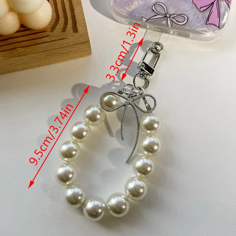 Comprar Decoración dulce de la caja del auricular del colgante del teléfono móvil del arco de la perla moldeado de moda