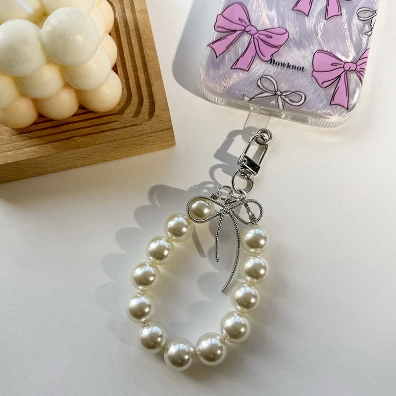 Comprar Decoración dulce de la caja del auricular del colgante del teléfono móvil del arco de la perla moldeado de moda