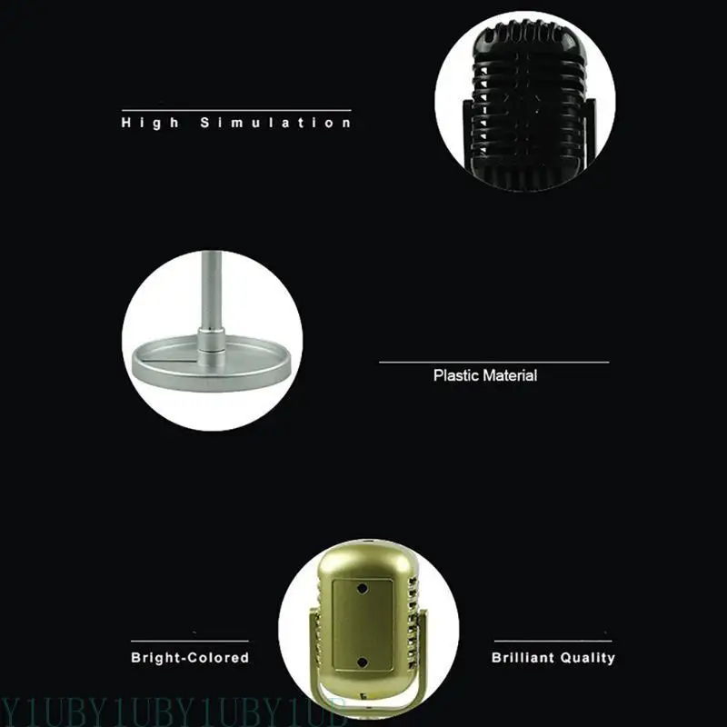 Características:Micrófono falso perfecto para accesorios retro en micrófonos de grabación y escenario, fiestas sin que se caigan el micrófono.