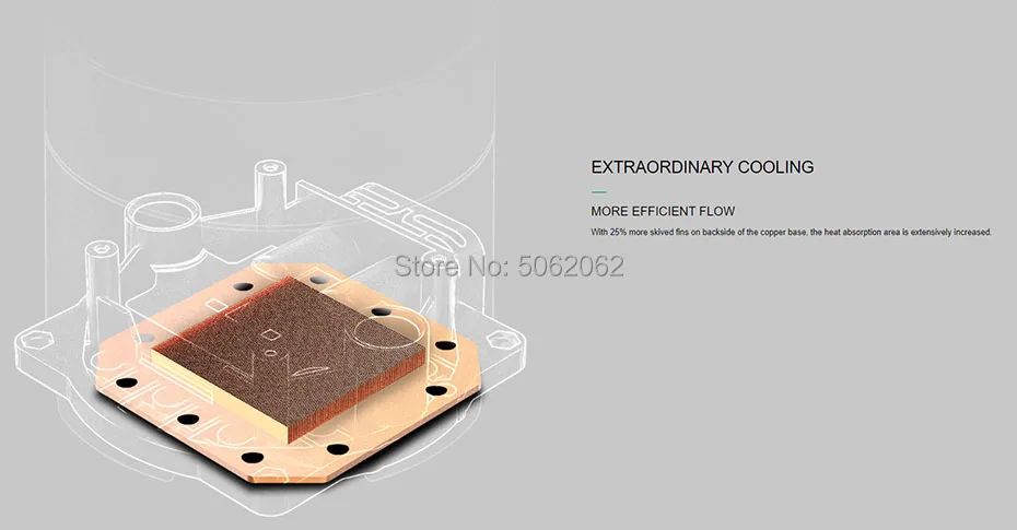 2,25% más aletas biseladas en la parte posterior de la base de cobre, el área de absorción de calor aumentó ampliamente.