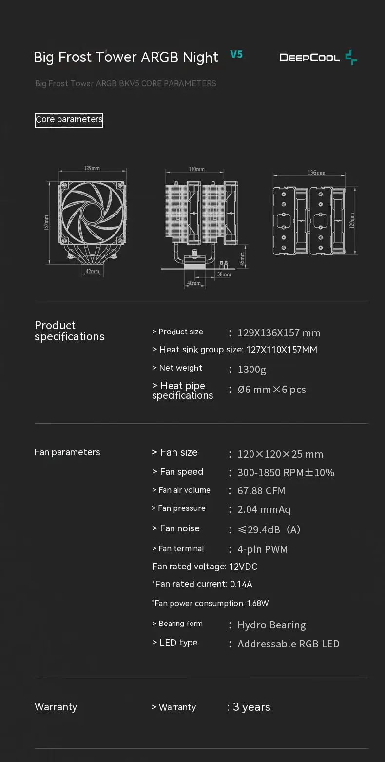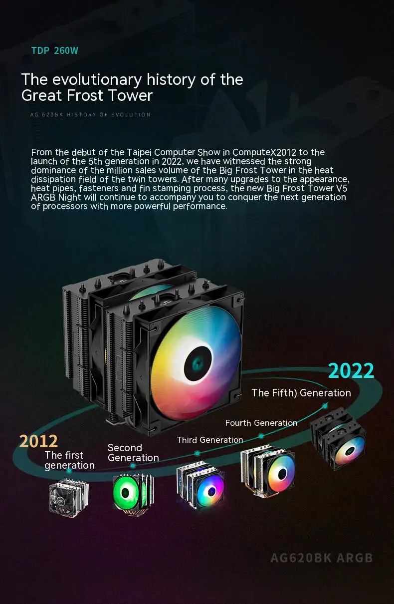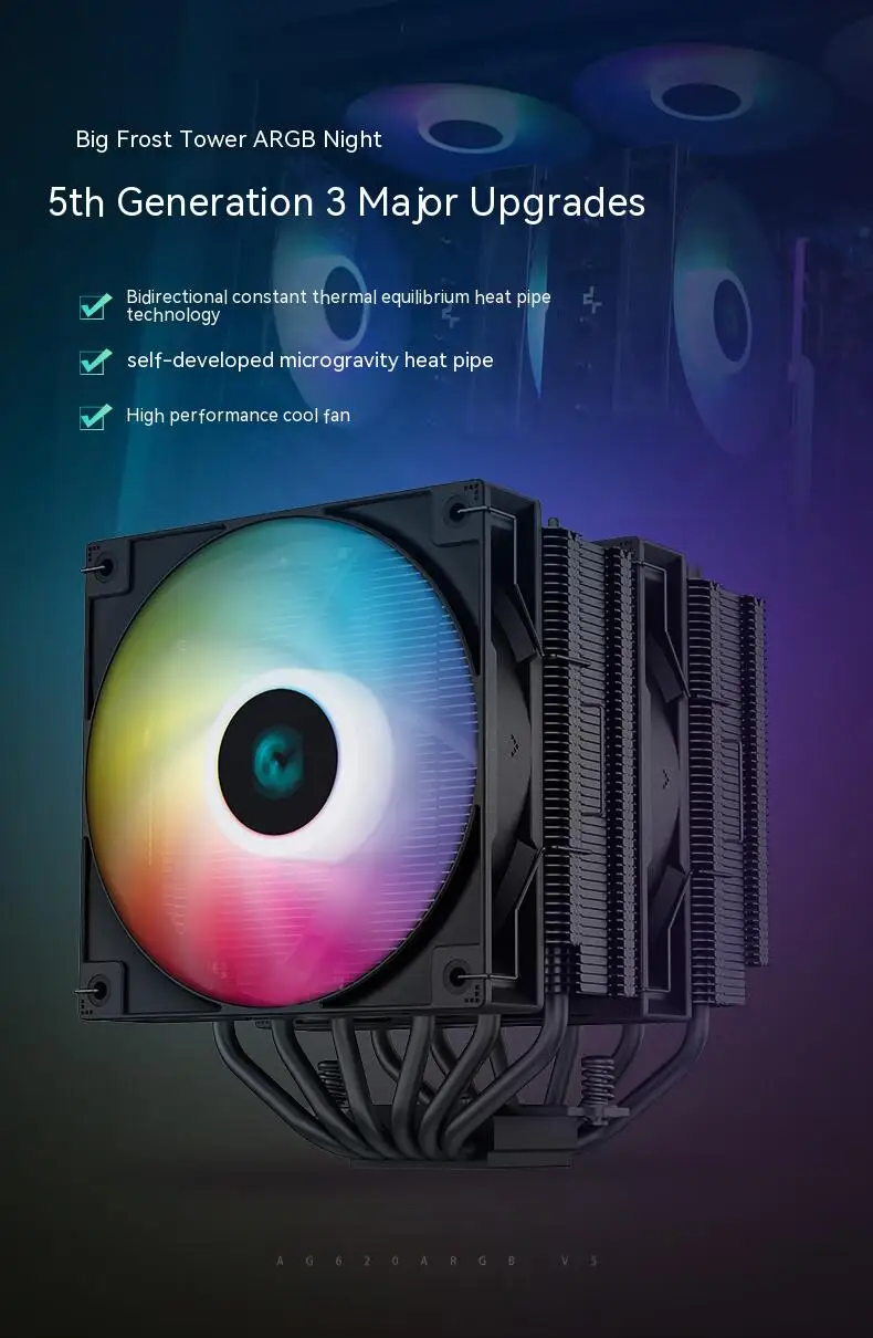 Comprar DeepCool-enfriador de aire de CPU AG620 ARGB, torre doble, 6 tubos de calor, radiador PWM de 120mm, ventilador Dual silencioso lateral para LGA1700 115X AM4 AM5