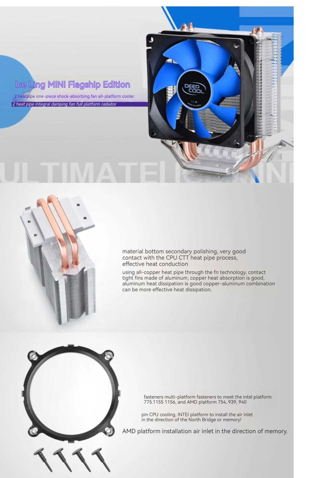 Comprar DeepCool-enfriador de aire ICE EDGE MINI FS V2.0 para CPU, procesador AMD AM4/AM5 Intel LGA1700/1200/1151/1150/1155, radiador para PC