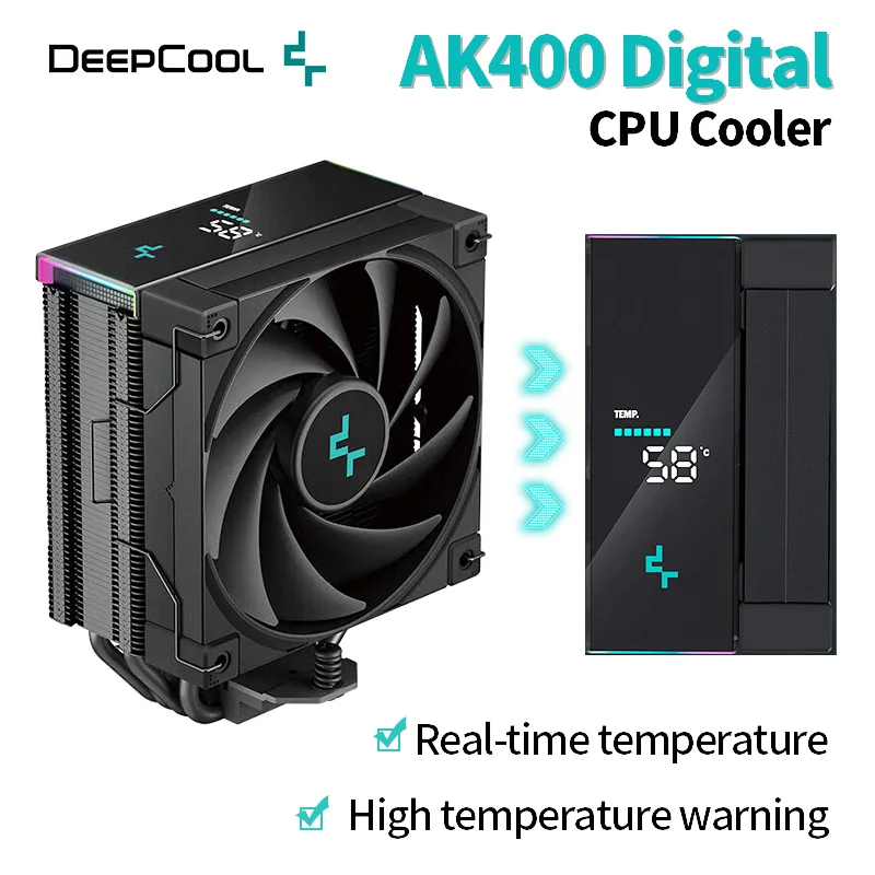 Comprar DeepCool-enfriador de Cpu AK400 con pantalla Digital, 4 tubos de calor, disipador térmico de refrigeración, procesador de ordenador de escritorio, Enfriador de aire para 1700 1200 AM4