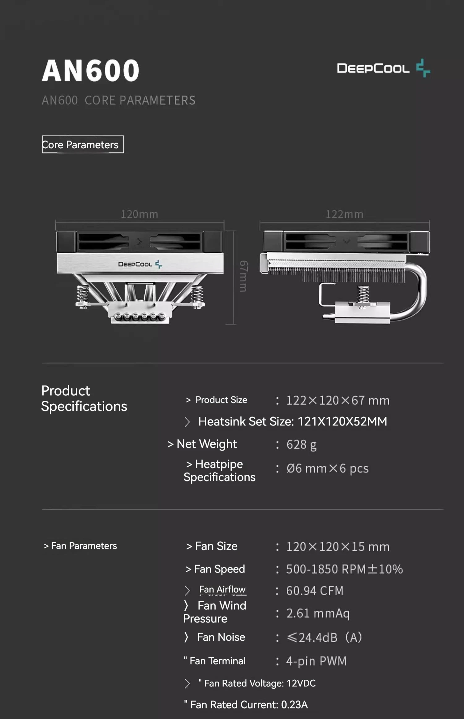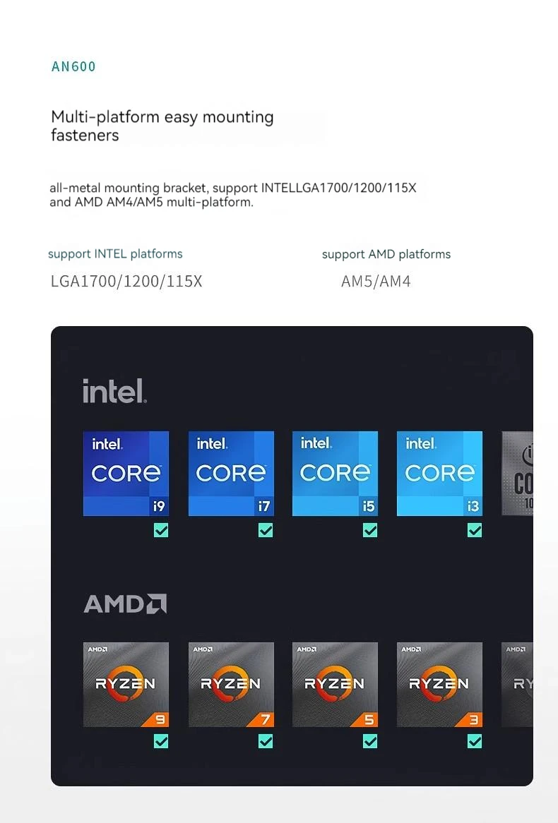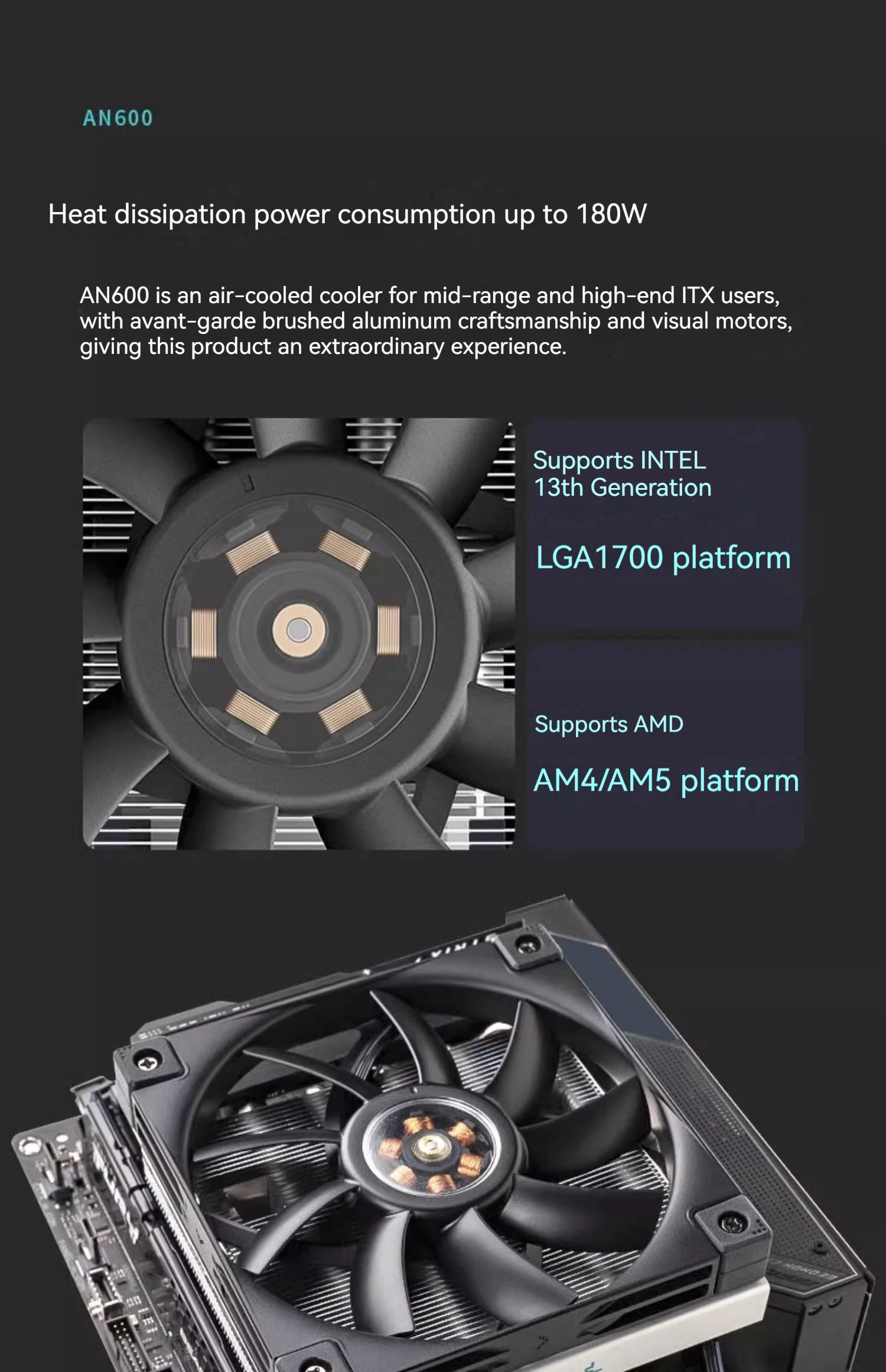 Deepcool AN600 6 radiador de tubo de calor CPU procesador enfriador AM4 bajo perfil Cpu ventilador enfriador de aire para Intel LGA1700/1200/115X AM5