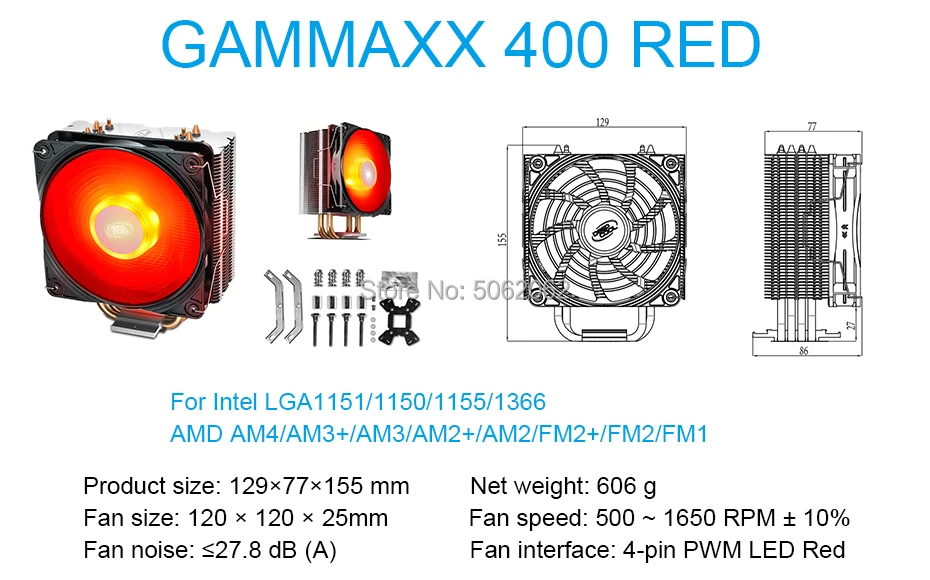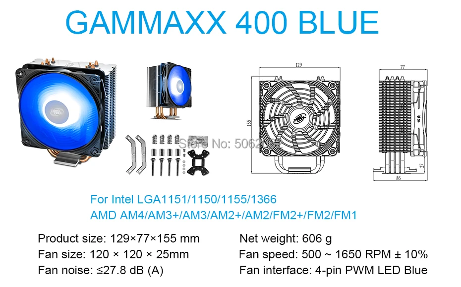 Comprar DEEPCOOL-Radiador de CPU GAMMAXX 400K, 4 tubos de calor, 12cm, PWM LED, RGB, ARGB, ventilador de refrigeración, para 115x2011 1366 AMD AM4 AM3 slot