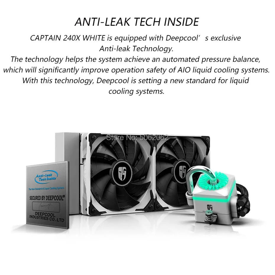 Comprar DEEPCOOL-refrigerador líquido de CPU CAPTAIN 240X, enfriador blanco con doble ventilador PWM de 120mm, refrigeración por agua para Intel LGA 2011 1155 AMD TR4 AM4