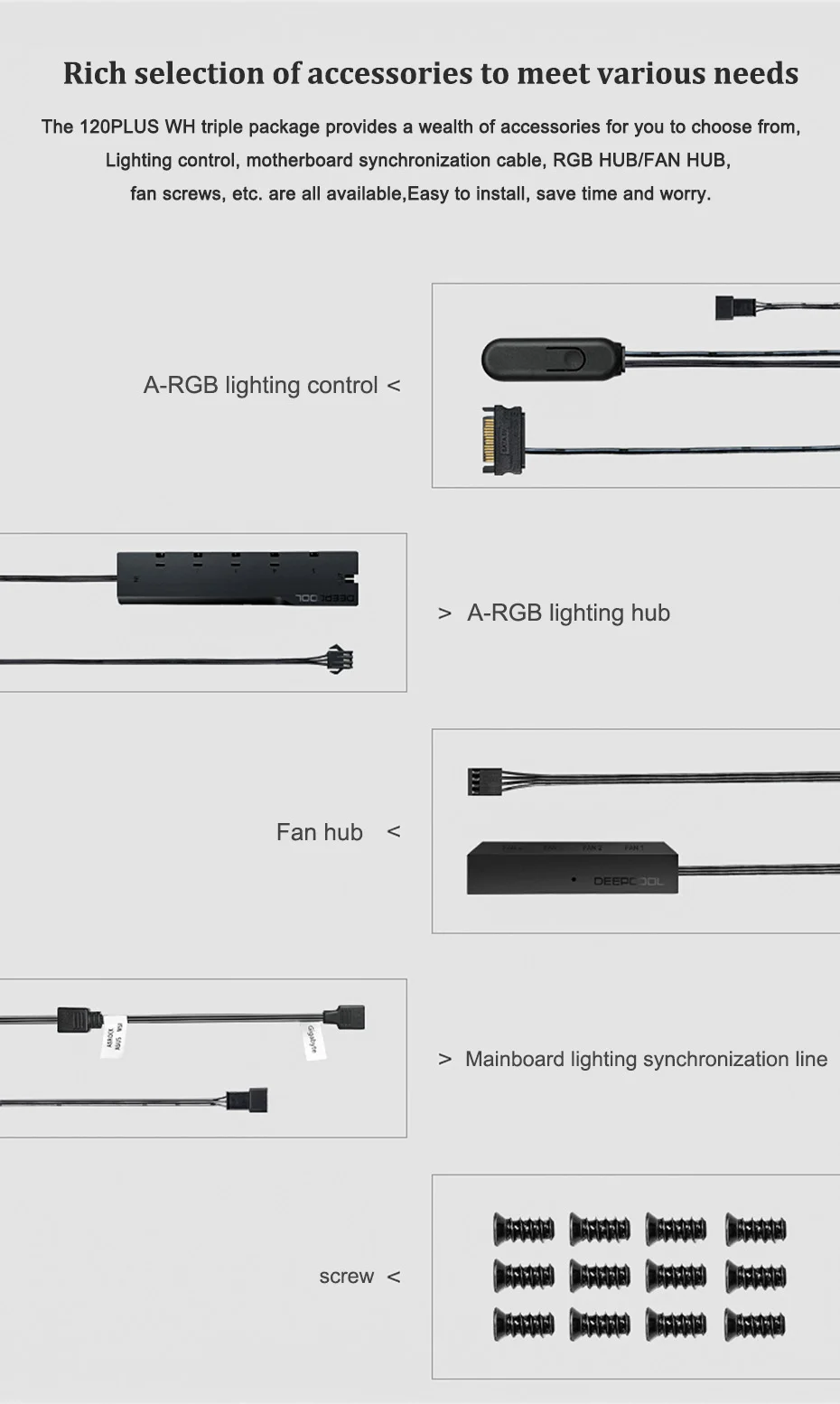 Comprar DEEPCOOL-ventilador de refrigeración 3 en 1 para ordenador, 5V/3 pines, RGB, 120MM, silencioso, para CPU, CF120 Plus