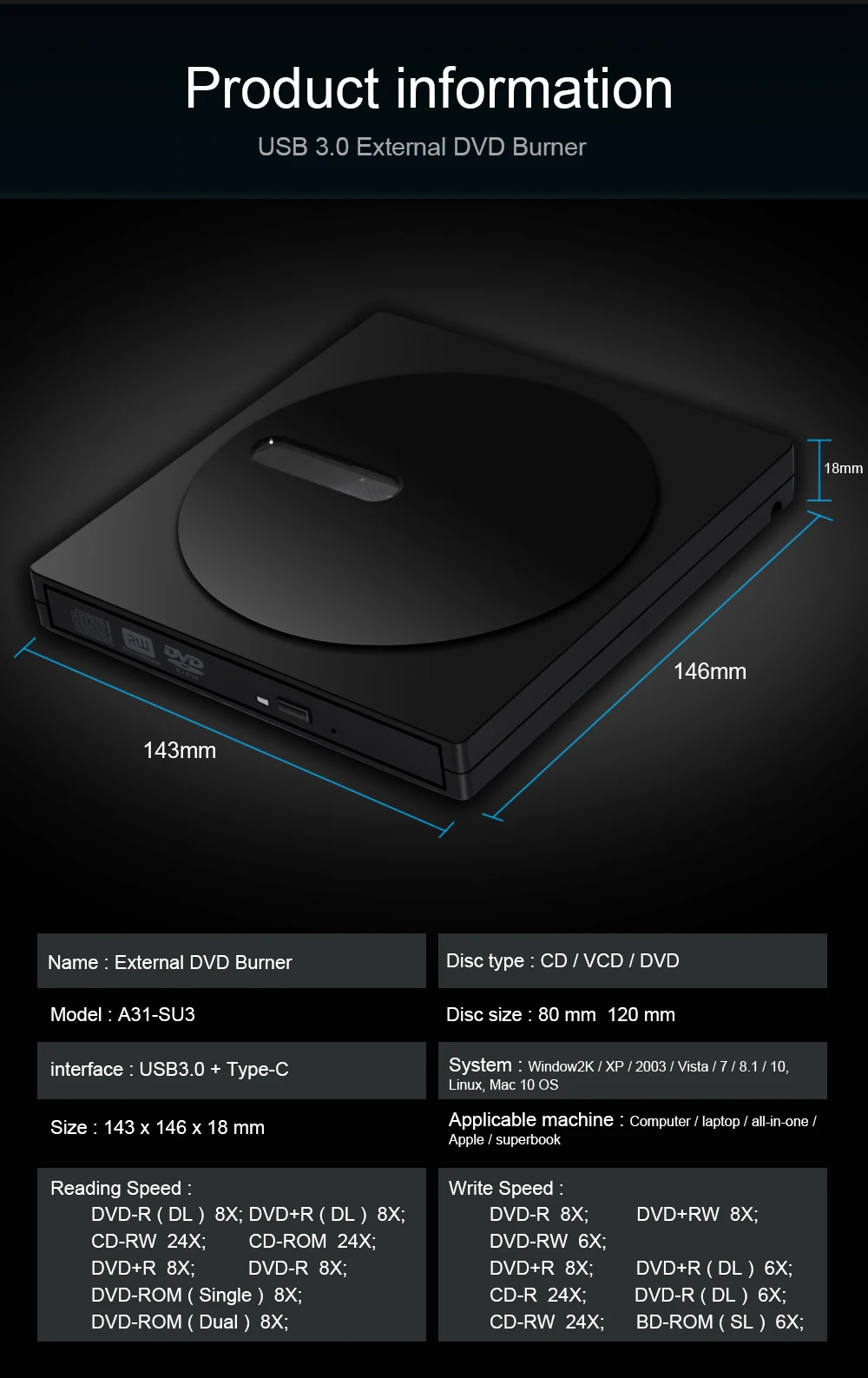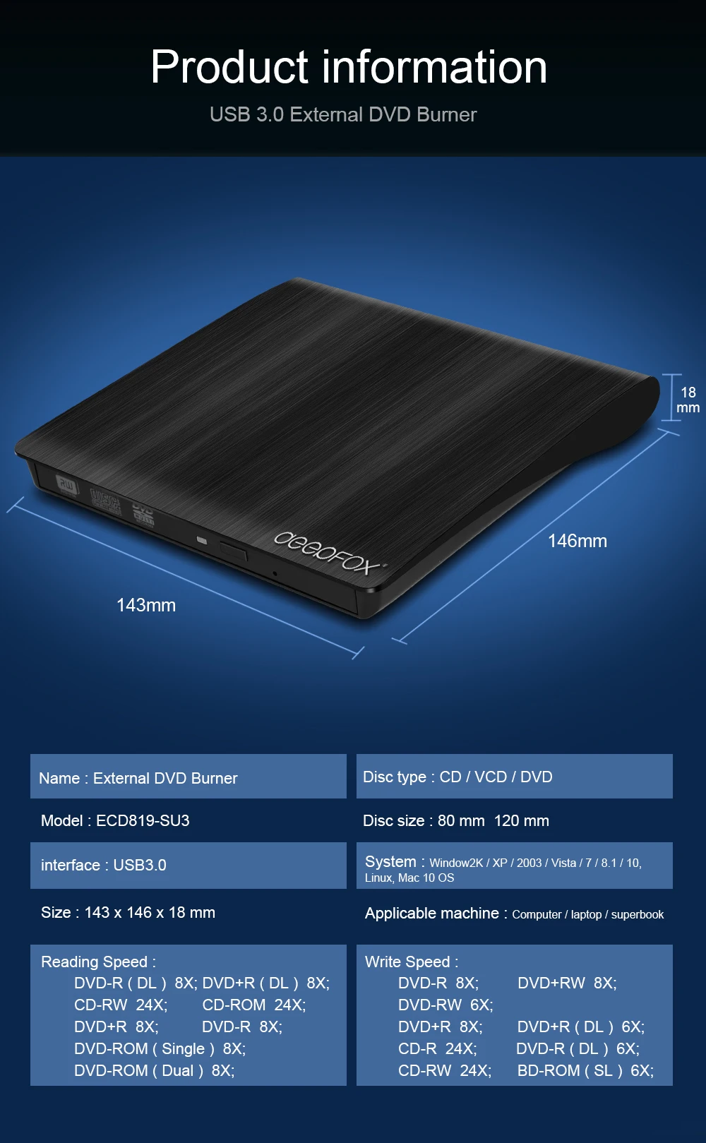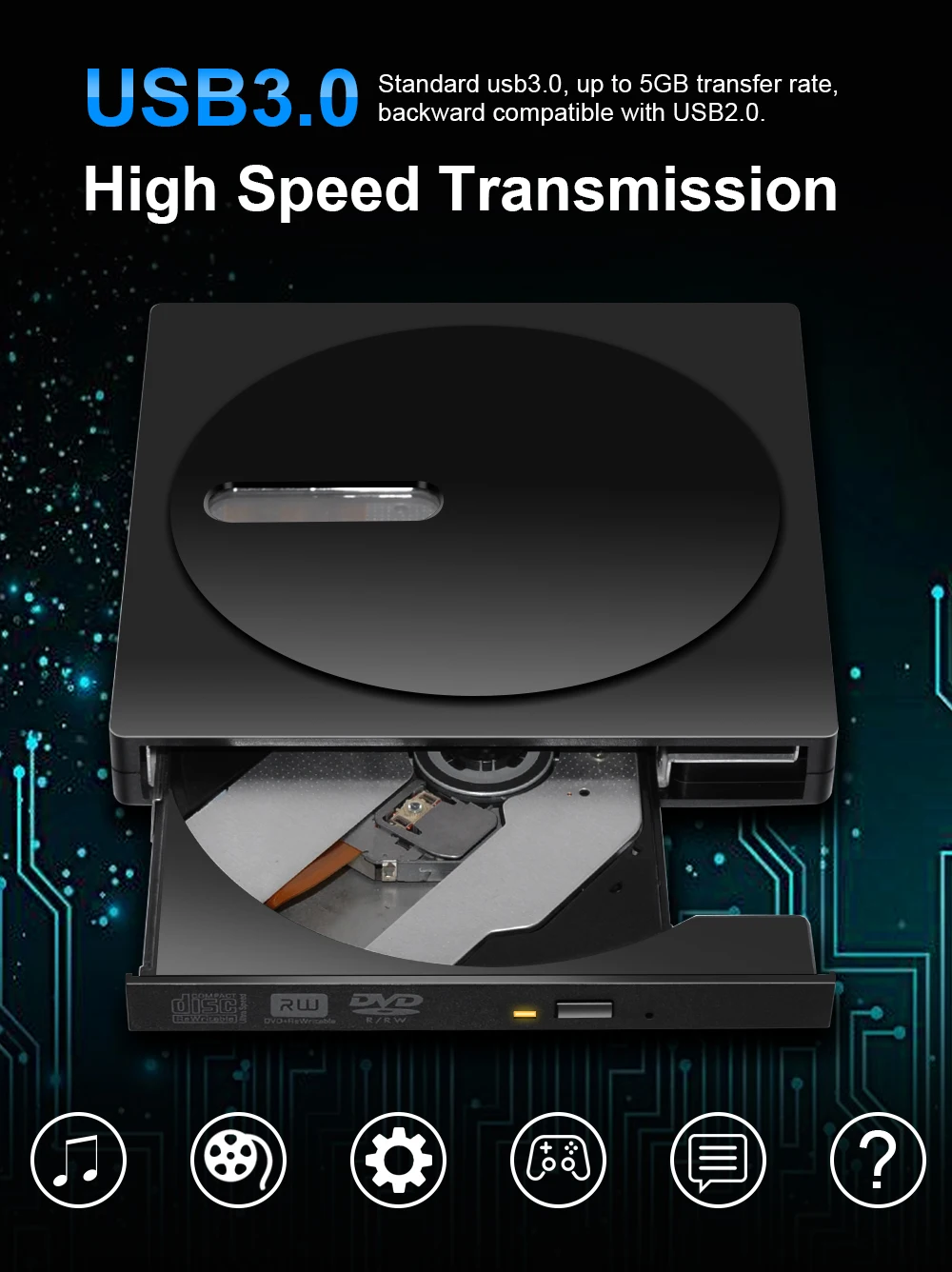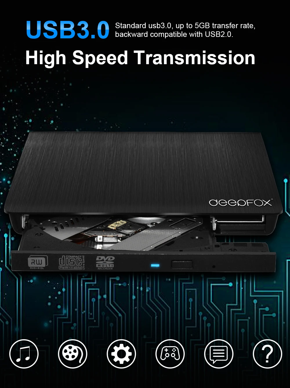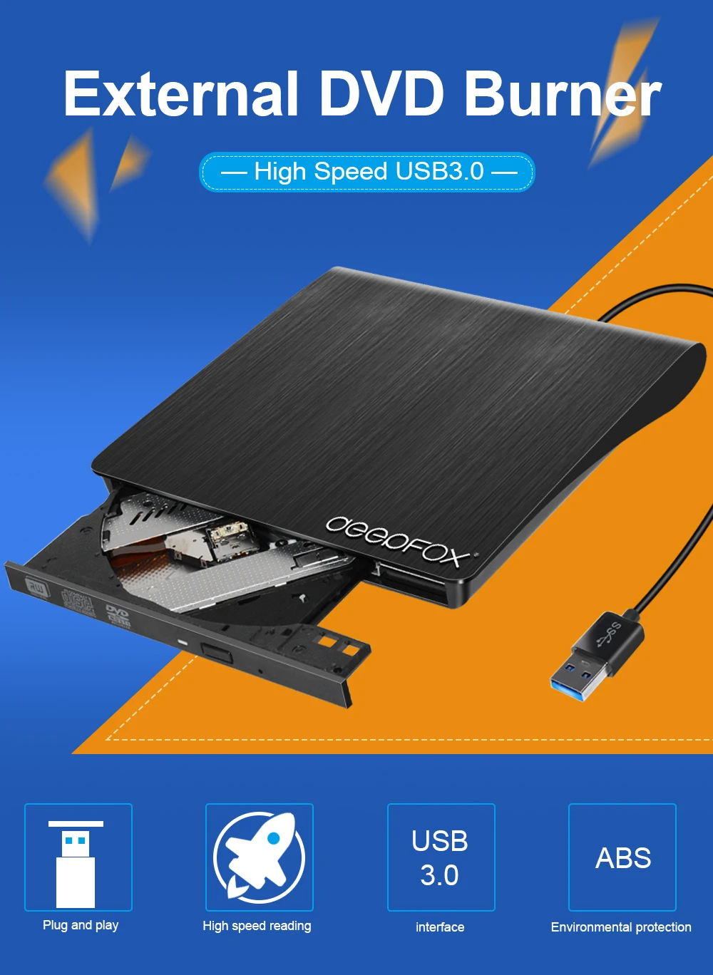 Comprar Deepfox USB 3,0 delgado externo DVD RW CD escritor unidad grabadora reproductor unidades ópticas para ordenador portátil PC grabadora de Dvd portátil