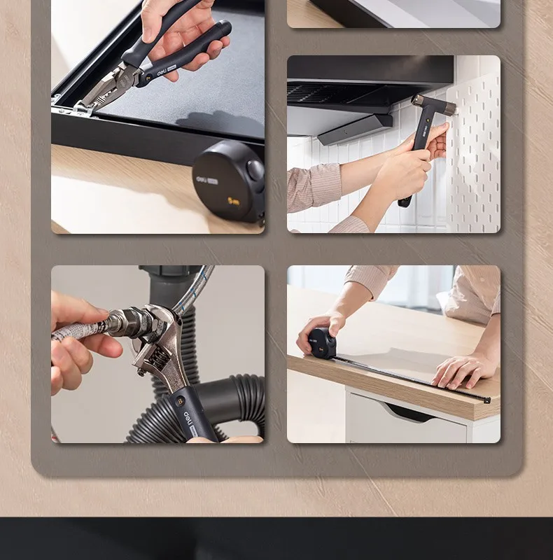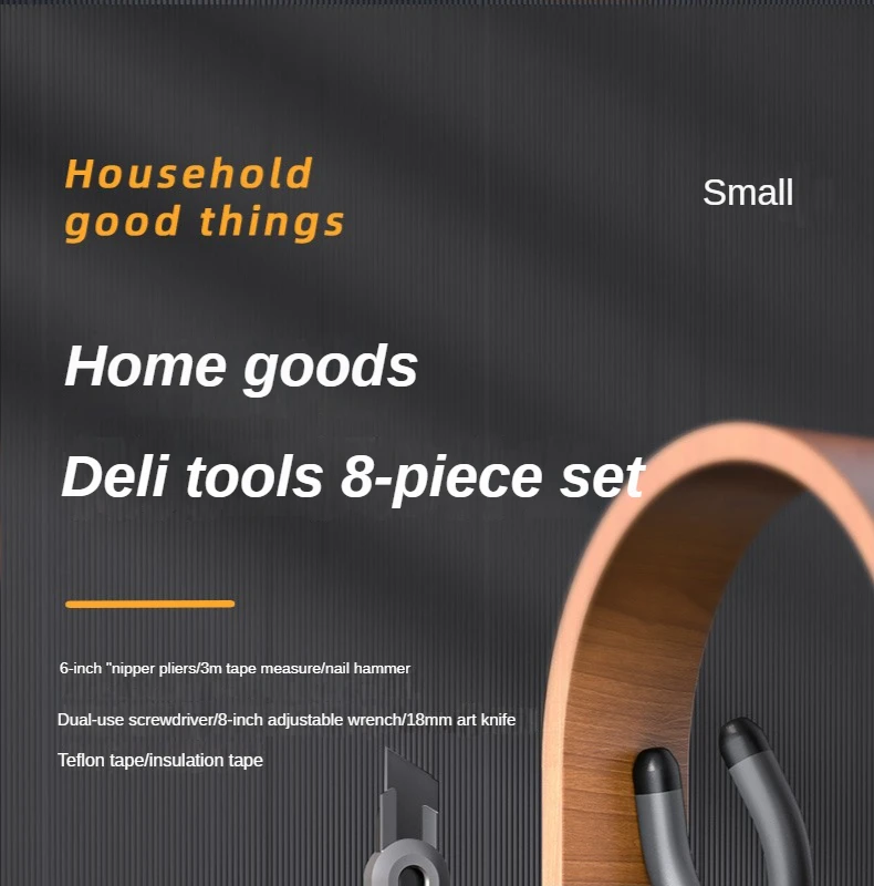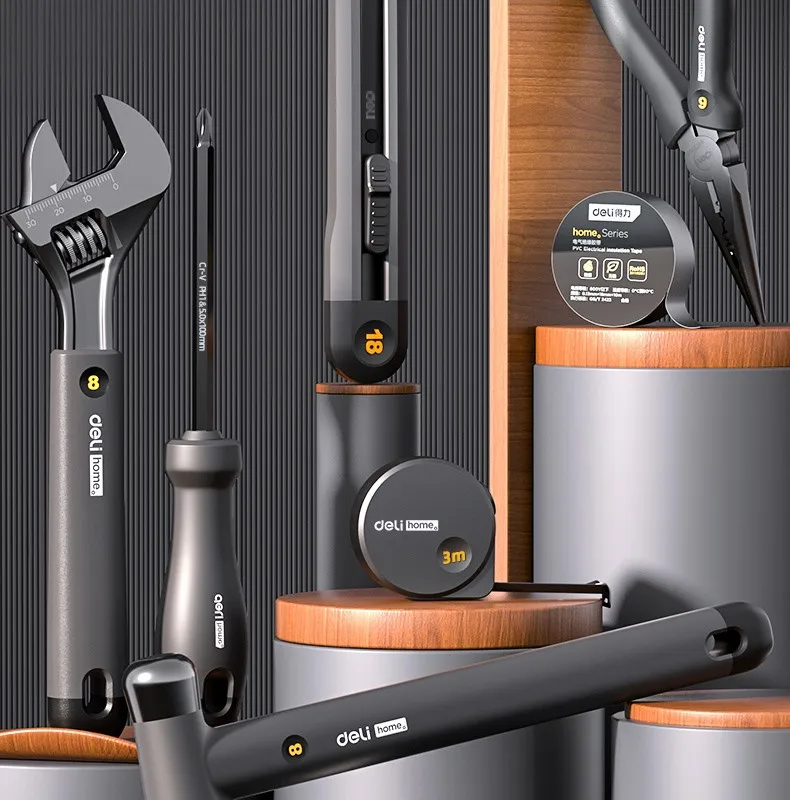 Deli, nuevo juego de herramientas, serie para el hogar, destornillador doméstico, llave de cinta, cinta de tornillo, cuchillo artístico, materia prima, cinturón, colección de herramientas