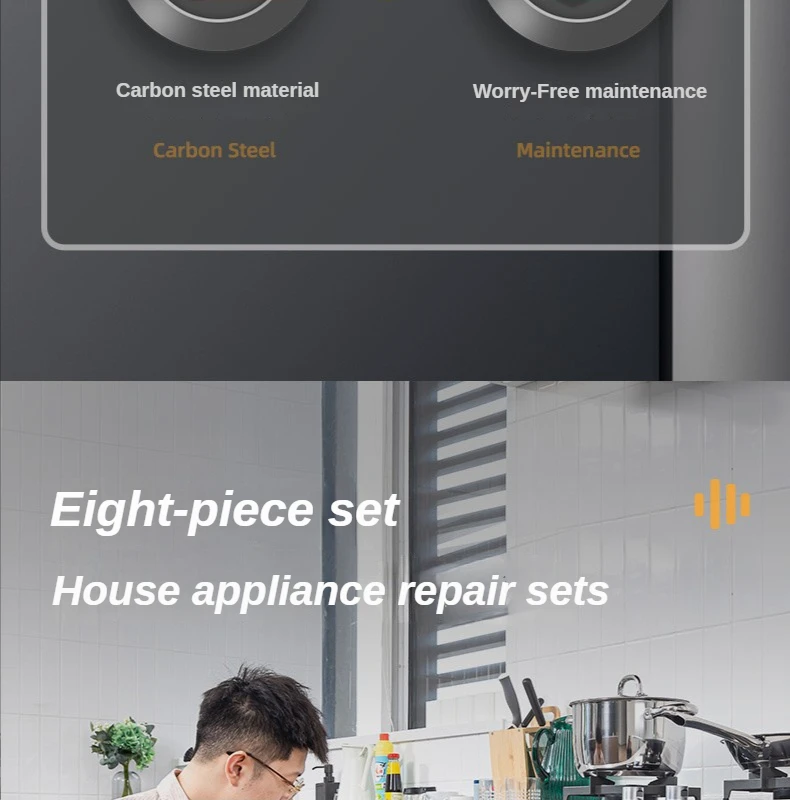 8 piezas: alicates de Punta puntiaguda de 6 pulgadas * 1 + destornillador * 1 + cinta métrica de 3m * 1 + martillo de montaje de 8 pulgadas * 1 + cuchillo de arte * 1 + llave ajustable de 8 pulgadas * 1 + cinta aislante * 1 + cinta de materia prima * 1