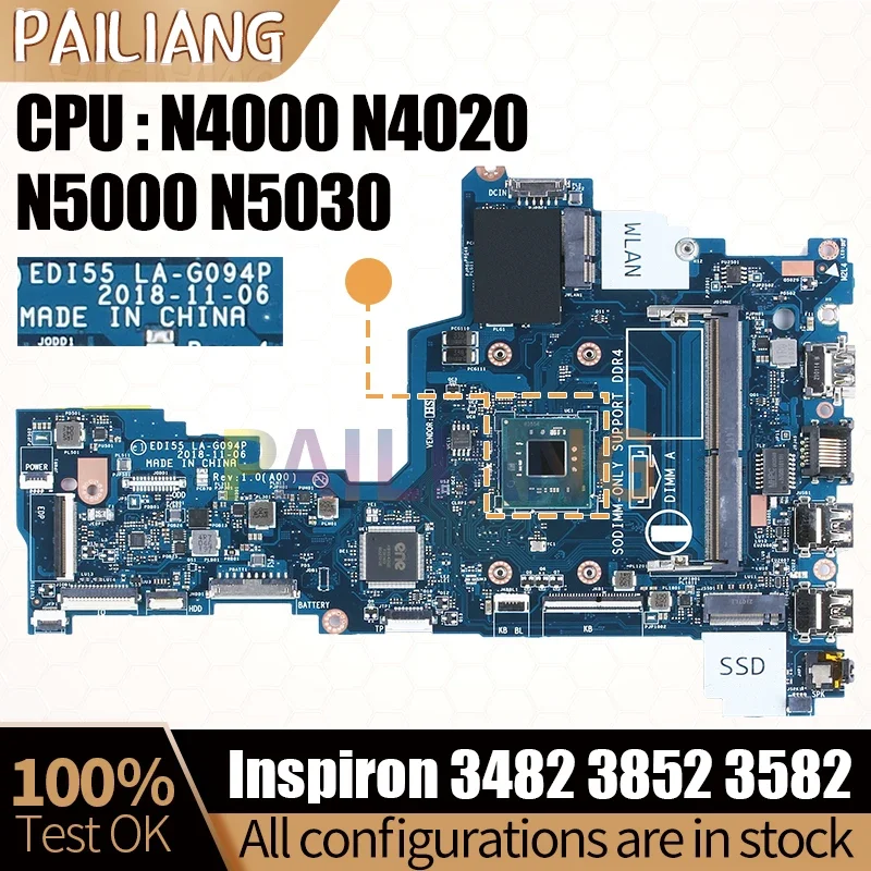 Comprar Para Dell 3482 3852 3582 placa base del cuaderno LA-G094P 06P8X8 0887W5 N4000 N4020 N5000 N5030 placa base completamente probada