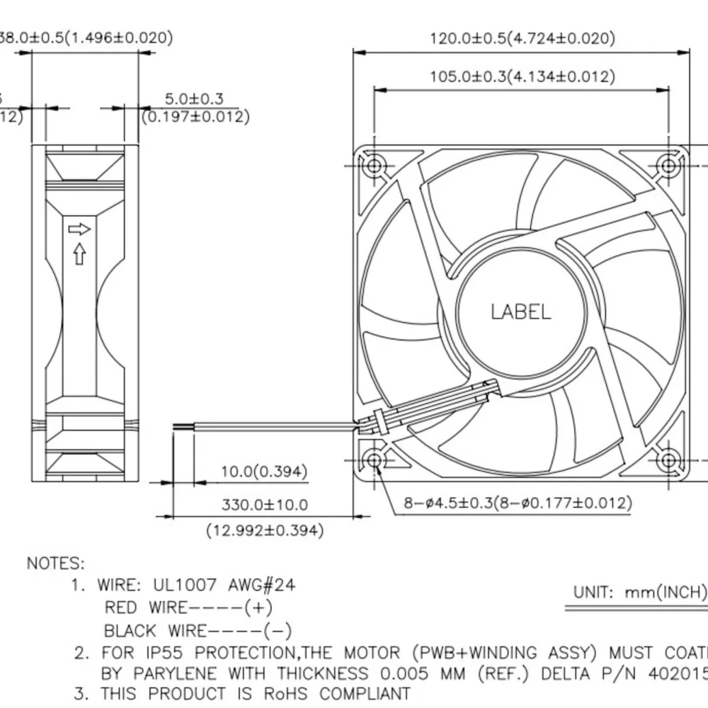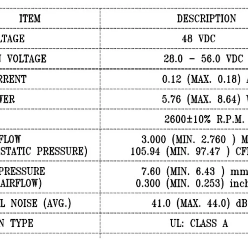 Marca del ventilador: Delta, Taiwán Modelo: AFB1248HE-ROO Tamaño: 120 * 120 * 38 mm Rodamiento: rodamiento de bolas doble Voltaje: 48 V Corriente: 0,18 A Volumen de aire: 120,07 cm Potencia: 8,64 W Velocidad: 2600 rpm Vida útil: 100000 horas Interfaz: placa principal Interfaz de 3 pines Función adicional; alarma de señal Roo