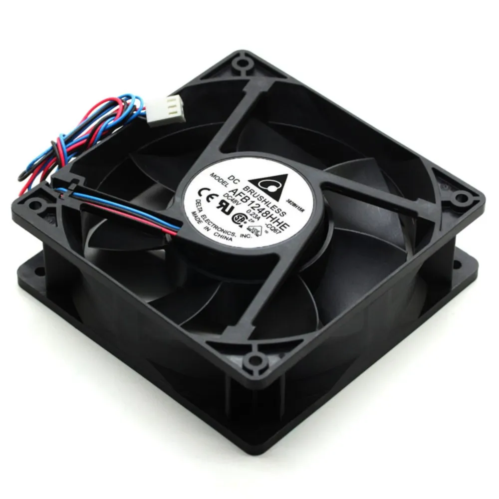 Brand: DELTA Model: AFB1248HHE Size: 120 x 120 x 38mm Voltage: 48V Current: 0.23A Actual current: 0.15A Speed: 2900rpm Air volume: 120.07cfm Noise: 44dBA Weight: 256g Bearing: double ball bearing