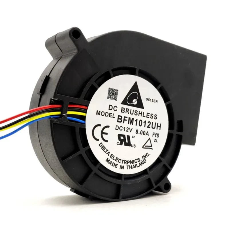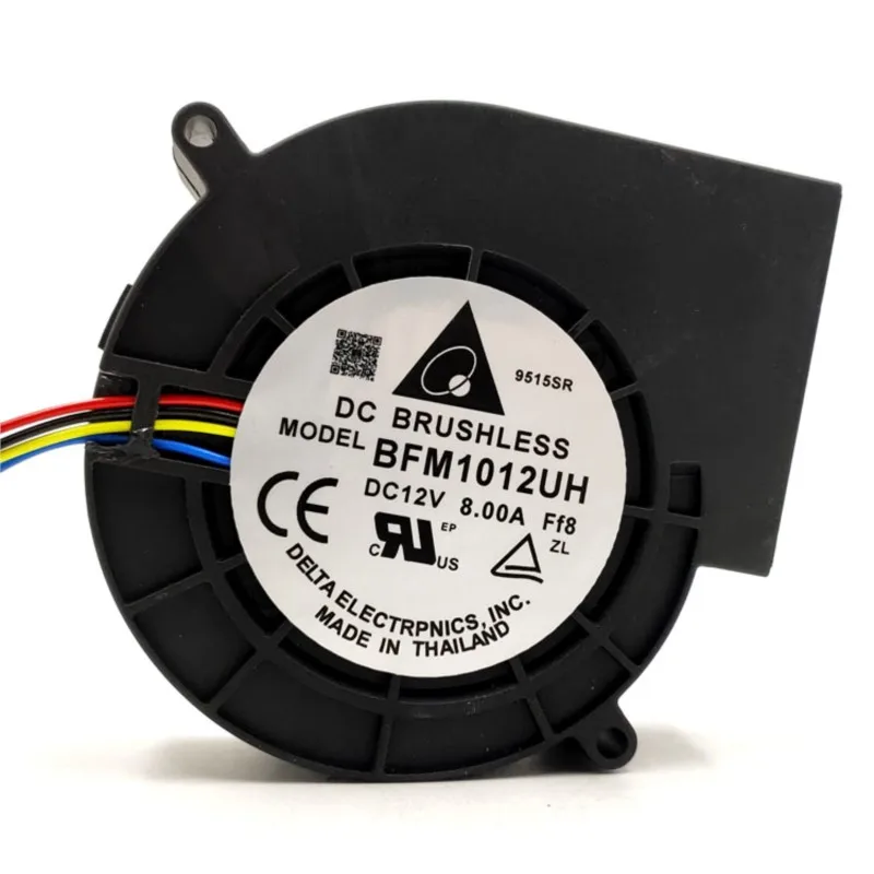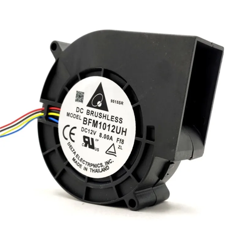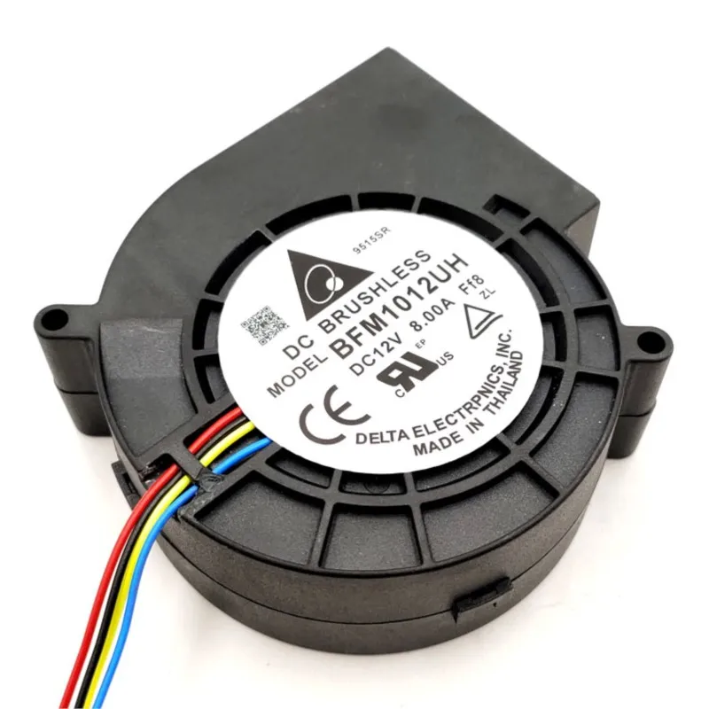 Product Description Unleash unparalleled cooling power for your most demanding industrial, server, and high-impedance systems with the For DELTA BFM1012UH extreme performance blower fan. This robust 9733 (approx. 97x94x33mm) turbine fan operates at 12V with a substantial current draw of 5.80A (69.6W), and a peak current of 8.00A. It delivers a mighty 66.03 CFM of airflow and an incredibly high 6.806 inches H2O (172.86 mmH2O) of static pressure at 8700 RPM. Designed for environments where extreme heat dissipation and pushing air through restrictive channels are critical, this fan features a 4-wire interface for PWM (Pulse Width Modulation) control and a speed sensor (tachometer) for precise monitoring and control. Built with high-precision dual ball bearings, it boasts an impressive operating life of 70,000 hours at 40°C. Its durable, injection-molded PBT+fiberglass frame and blades ensure robust performance in temperatures from -10°C to +60°C. Please note, due to its powerful performance, it produces a high noise level of 70.5 dB(A). Key Selling Points Extreme High Static Pressure: With 6.806 inches H2O, it's engineered to overcome significant airflow resistance, ideal for densely packed enclosures. Massive Power & Airflow: Delivers 66.03 CFM at 8700 RPM with 5.80A (max 8.00A) current, providing intense spot cooling. PWM Control & Speed Sensor: Offers intelligent temperature-controlled speed adjustment and vital RPM monitoring for critical systems. Ultra-Durable Ball Bearings: Ensures an exceptionally long lifespan of 70,000 hours for continuous, reliable operation. Robust Industrial Construction: Made with flame-retardant plastic materials for enhanced durability in harsh environments. Genuine Original DELTA: Guarantees top-tier quality and performance from an industry leader. Application Scenarios This high-performance, high-static pressure blower fan is indispensable for: Server Cooling: Providing intense spot cooling for high-density server racks, blade servers, and critical components (CPUs, GPUs, RAID arrays). Industrial Automation & Robotics: Ensuring optimal thermal management in control cabinets, drive systems, and heavy-duty machinery where heat is concentrated. Telecommunication Equipment: Maintaining stable temperatures in network switches, routers, and base stations that generate significant heat. Mining Rigs: Essential for rapidly dissipating heat from cryptocurrency mining hardware. High-Impedance Systems: Perfect for applications with restrictive airflow paths, filters, or heat sinks that require powerful forced air. Specialized Medical Equipment: Cooling devices that demand precise and robust thermal control.