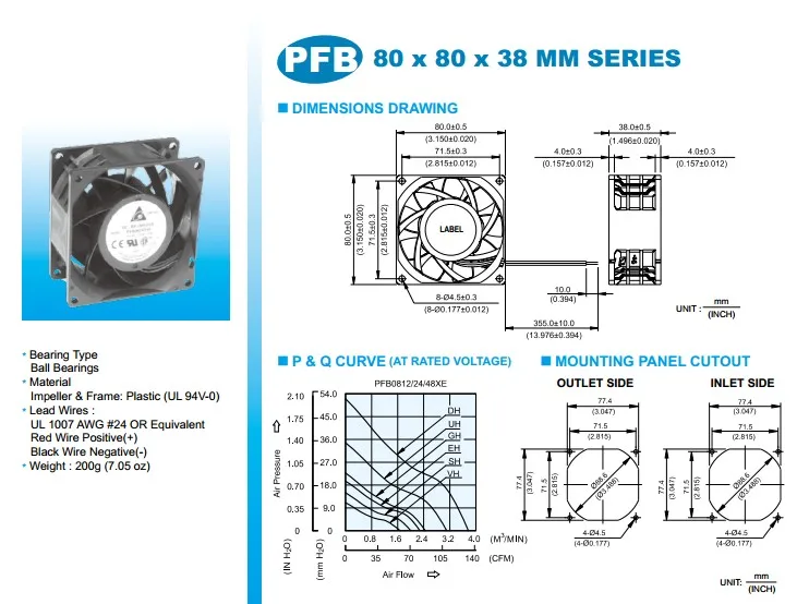 Comprar Delta PFB0824DHE 24V 8cm 1.63A Max flujo de aire de cuatro cables PWM ventilador convertidor