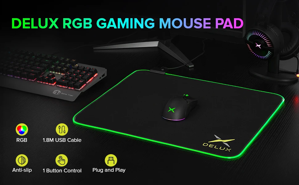 Comprar DELUX-alfombrilla de ratón para juegos GP003, Base de goma antideslizante, resistente al agua, con bordes duraderos, ideal para oficina y juegos